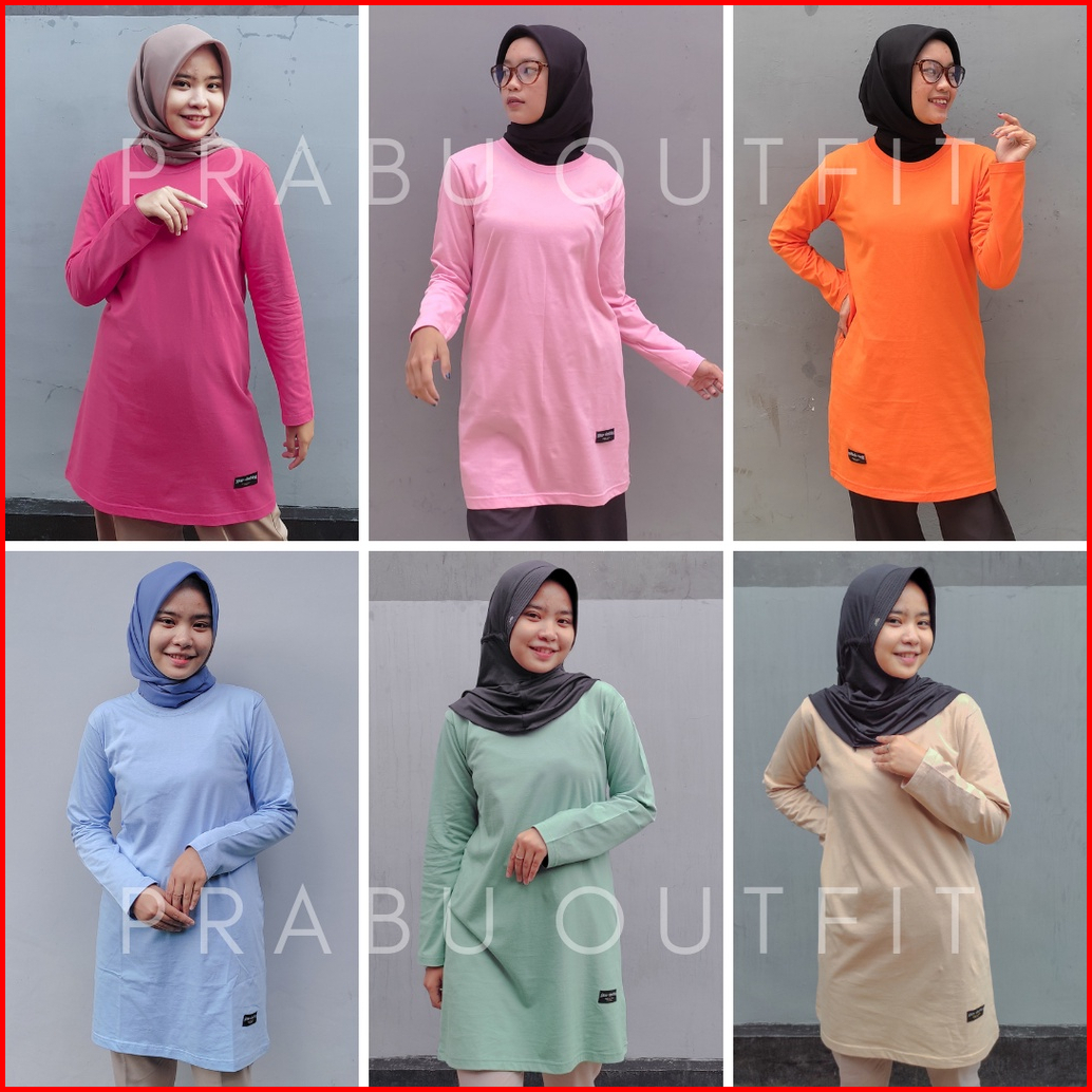 Prabuoutfit - Kaos Tunik Bahan Katun Combed 24 S Dan 30 S Original- Kaos Atasan Wanita - Kaos Polos Oversize Wanita - Ka