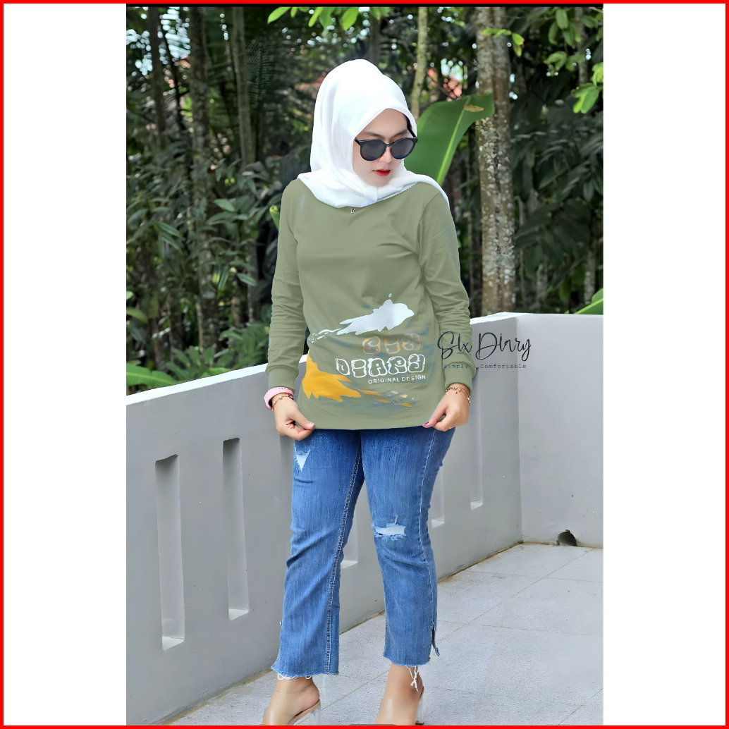 Kaos Wanita Atasan Wanita Kaos Lengan Panjang Wanita Six Diary Warna Hijau Sage Motif Segitiga Six Diary Atasan Wanita P