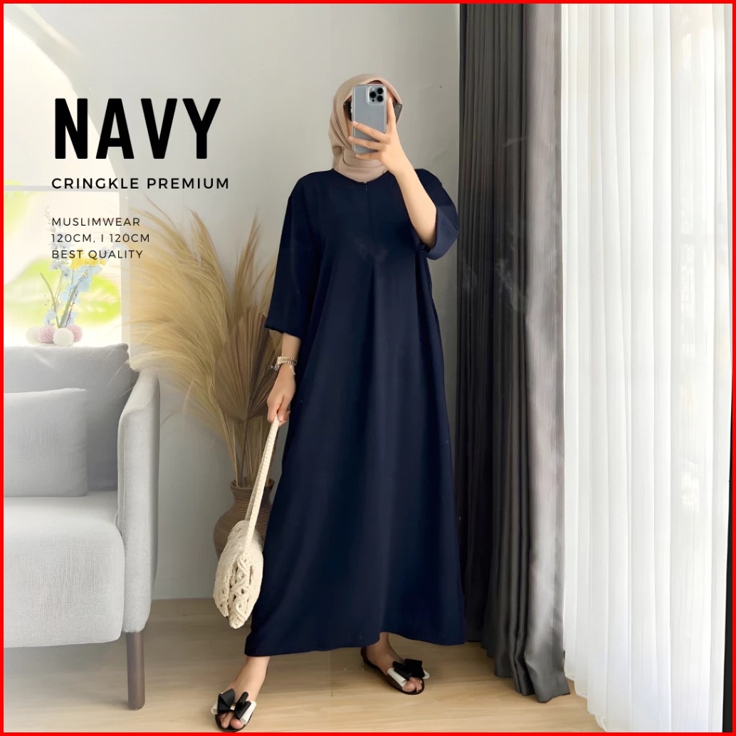 Daster Cringkle Polos Wanita Model Tangan 3 4