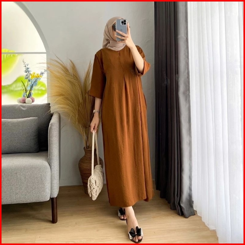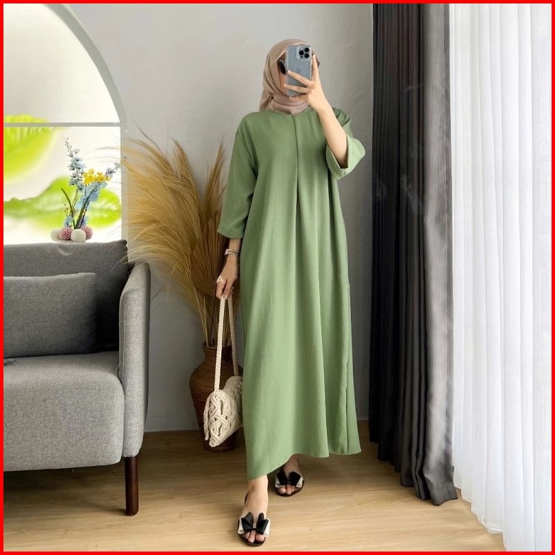 Daster Crincle Polos Wanita Model Tangan 3 4
