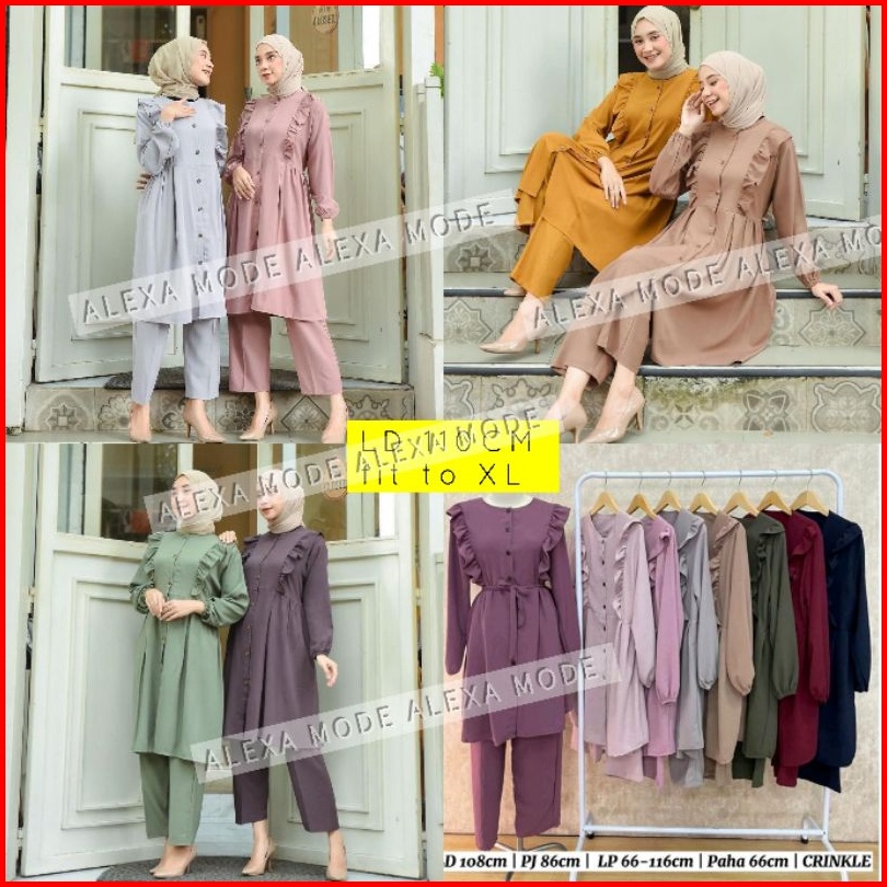 Jumbo New Setelan Long Tunik Polos Jumbo Julita Setcel Long Crinkle Airflow Divya Polos Fit To Xxxl