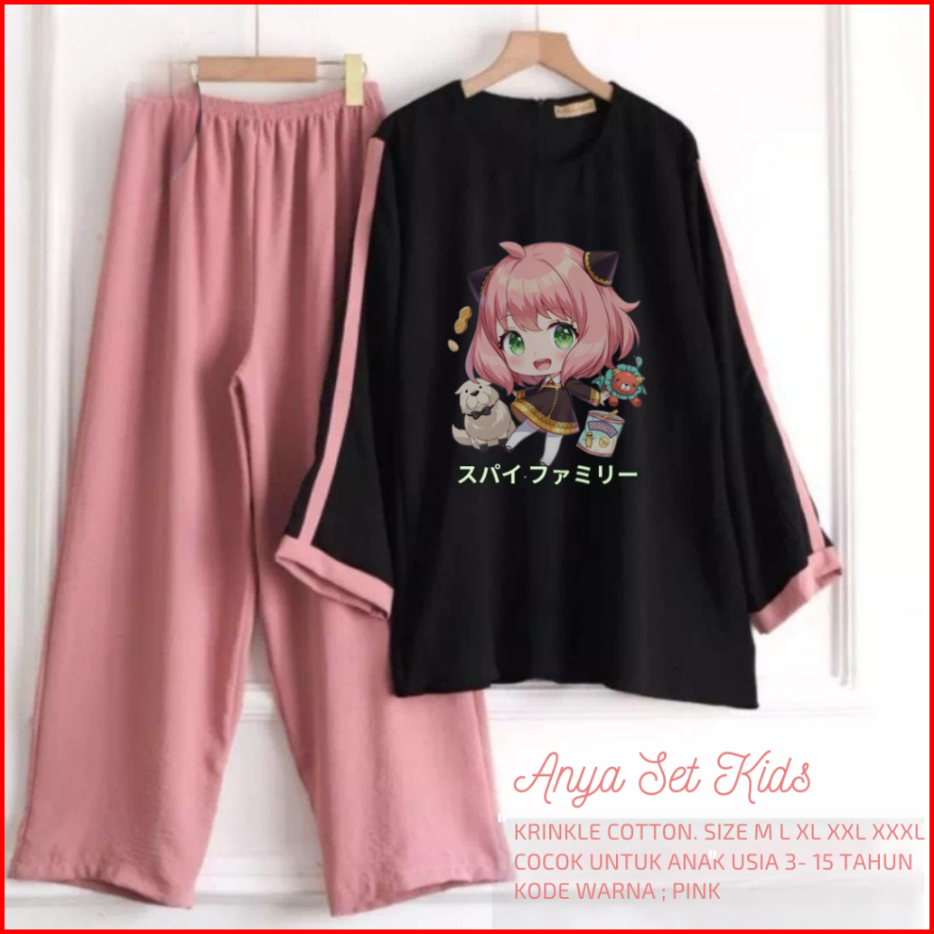 Setcel Wanita Kekinian One Set Best Seller Setelan Anak Perempuan Spy X Family Anya Set Kids Krinkel Airflow Size M L Xl
