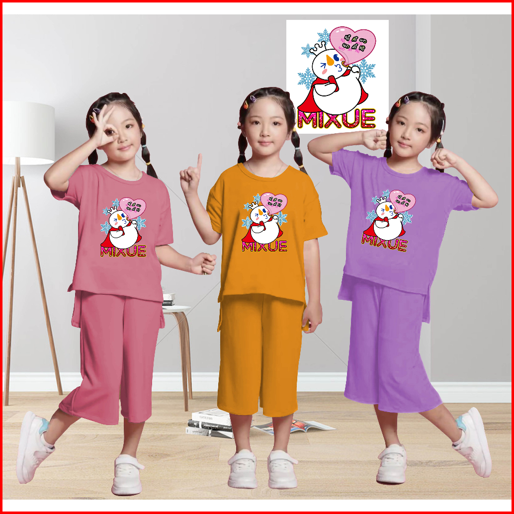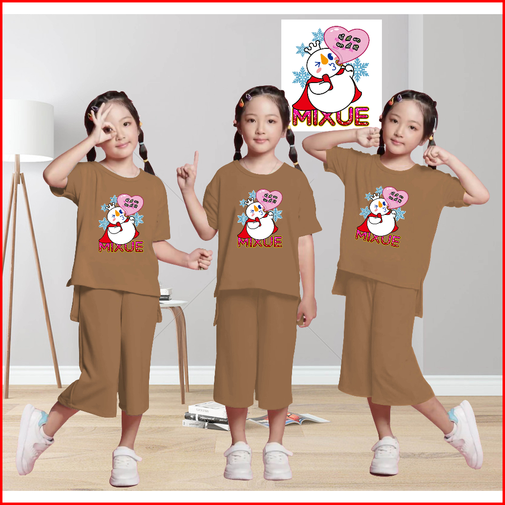 Setelan Anak Perempuan Mixue Usia 5-13 Tahun Setelan Kulot Anak Mixue Bubble Dorina