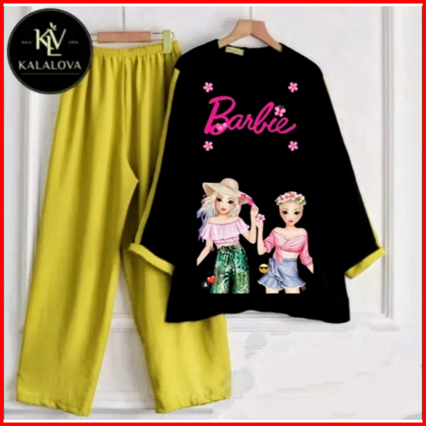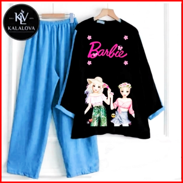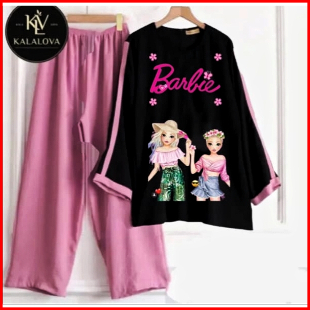 Setelan Anak Sablon Dtf Berbie Bahan Crinkle Air Flow Kekiniaan Termurah Setelan Anak Perempuan Terlaris Dan Viral Di