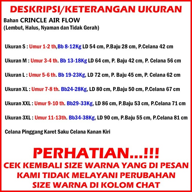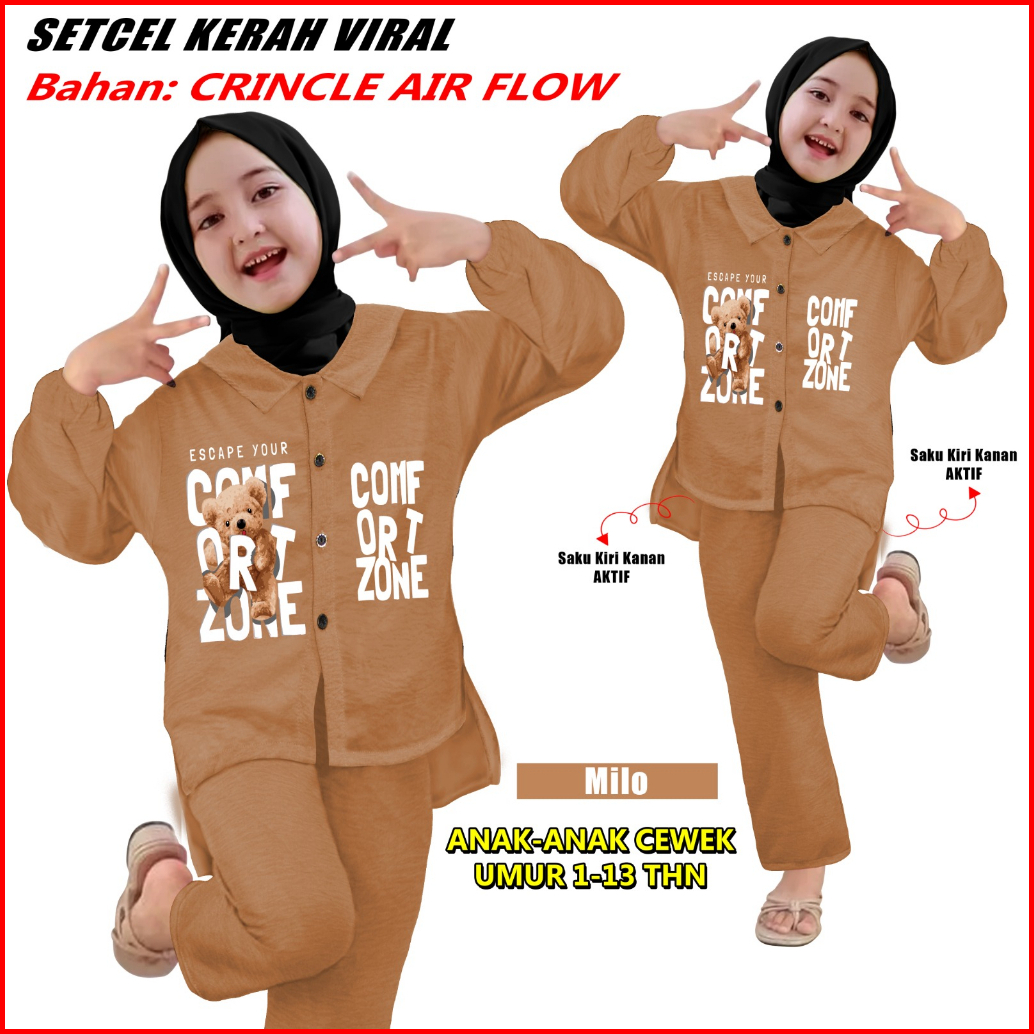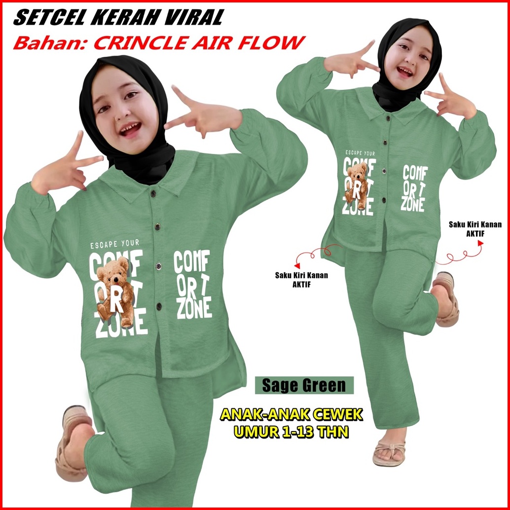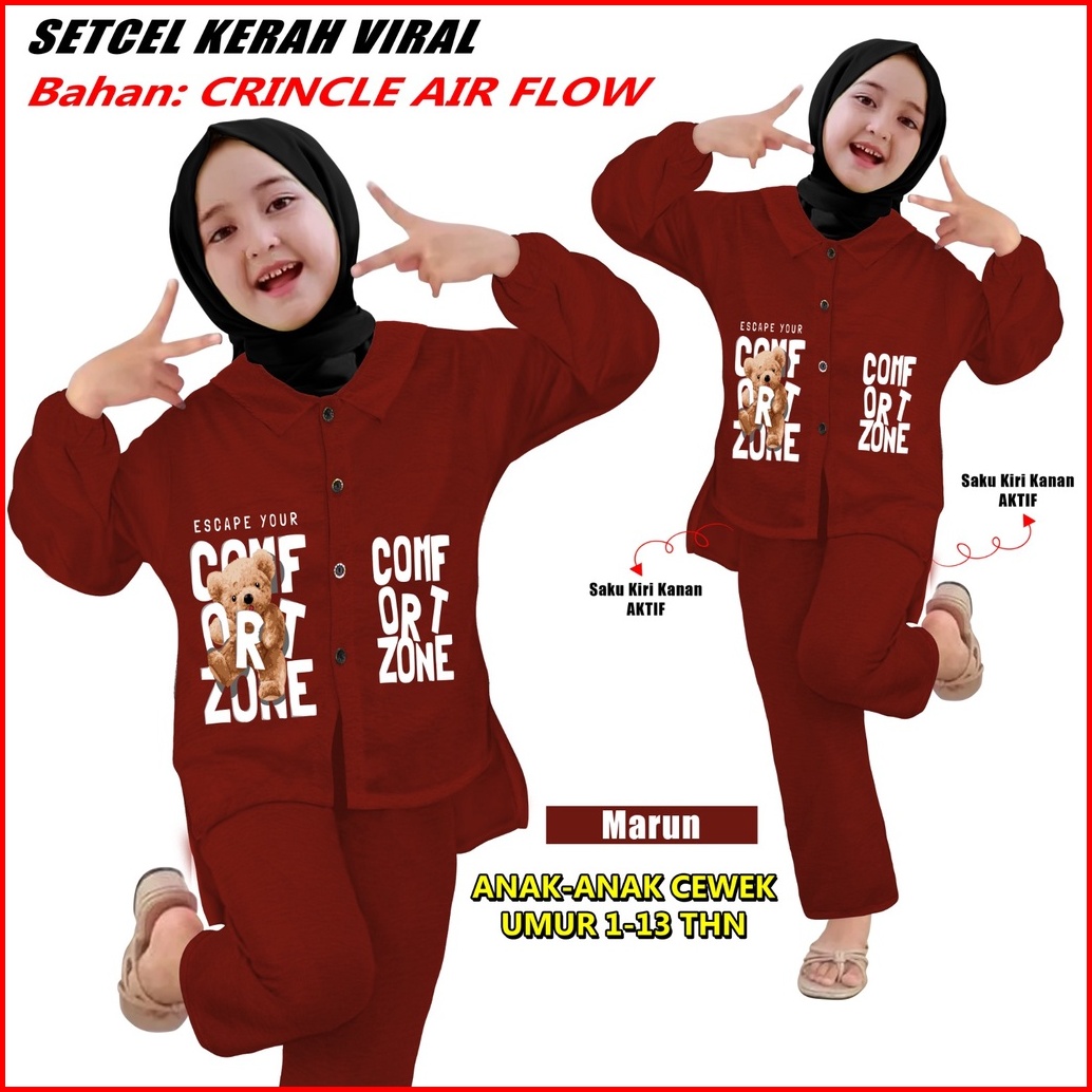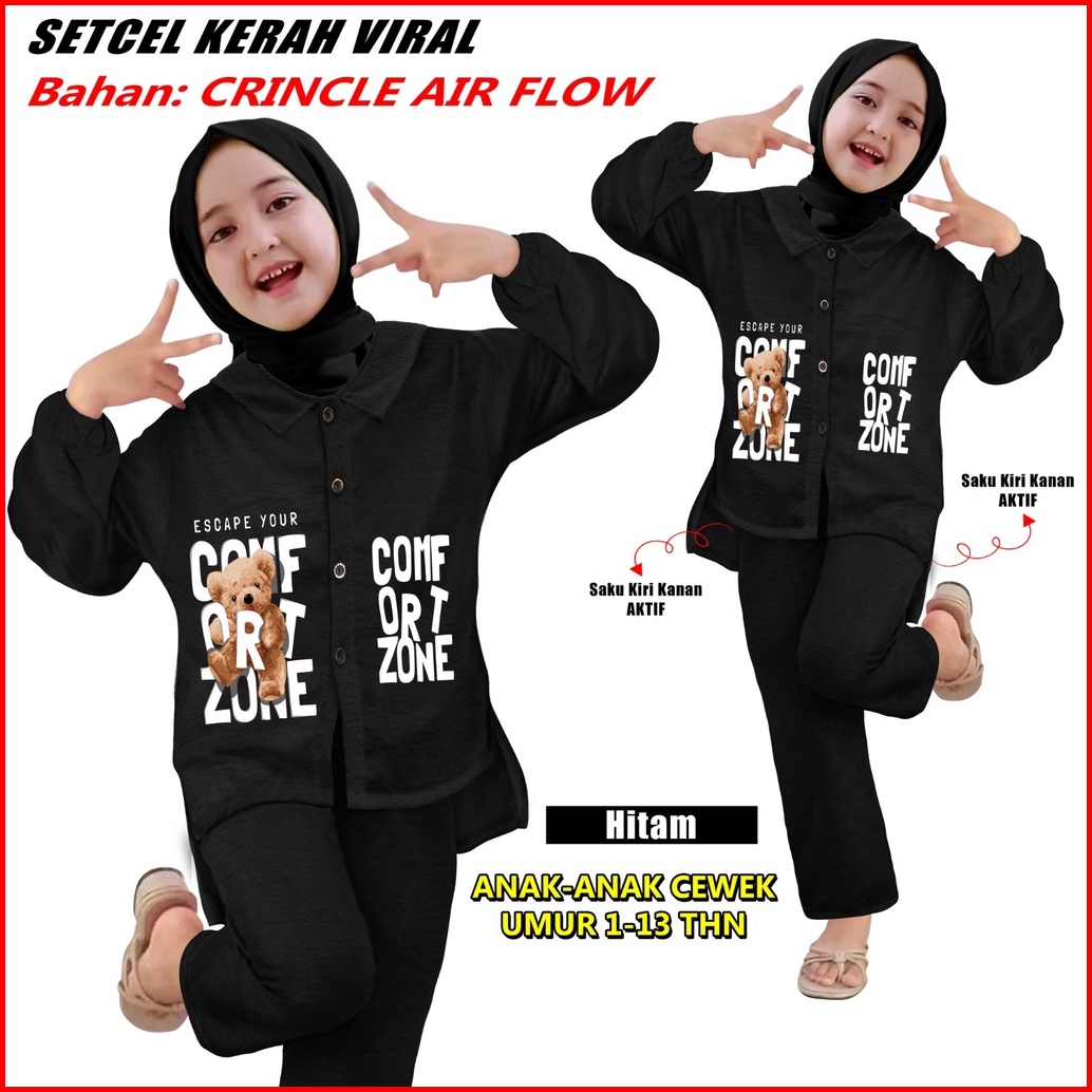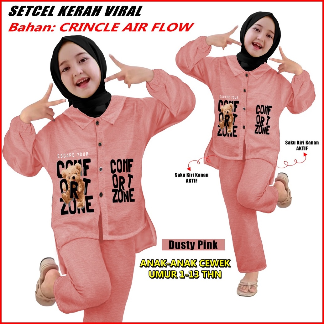 Setelan Anak-anak Setcel Viral Bahan Crincle Air Flow Sks 000227 Setelan Anak Slebew Cetak Mesin Dtf