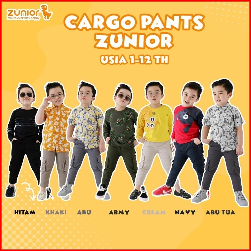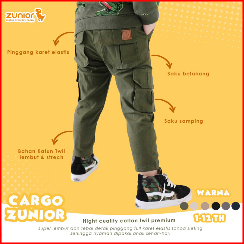 Celana Anak Cargo Panjang Laki-laki Dan Perempuan Zunior Premium 6 Warna 1-12 Tahun