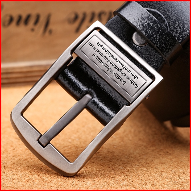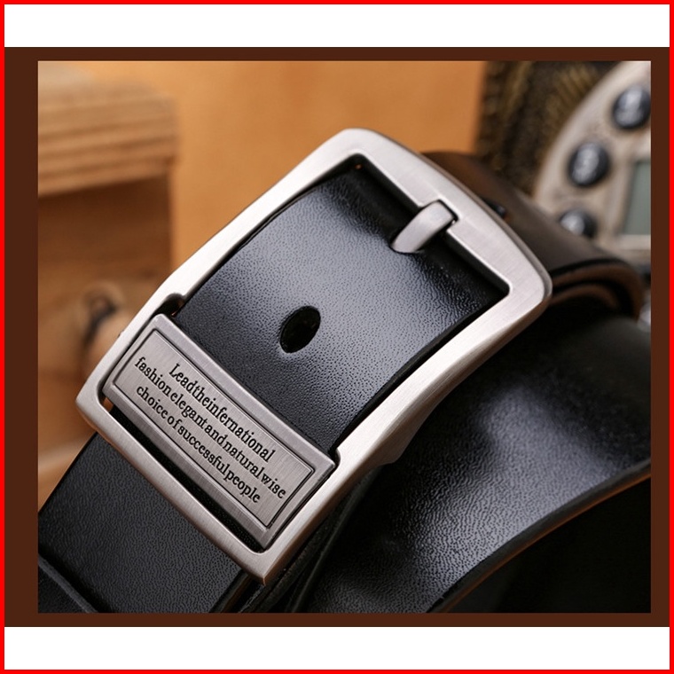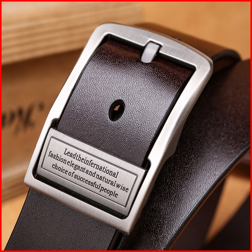 Bgs-056 Sabuk Kulit Sapi Sapi 2 Lapisan Fashion Gaya Kancing Pin Klasik Ikat Pinggang Pria Belt