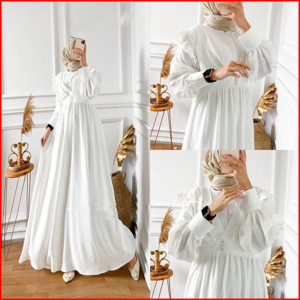 Gamis Bahan Crinkle Terbaru Dress Putih Dewasa Kekinian