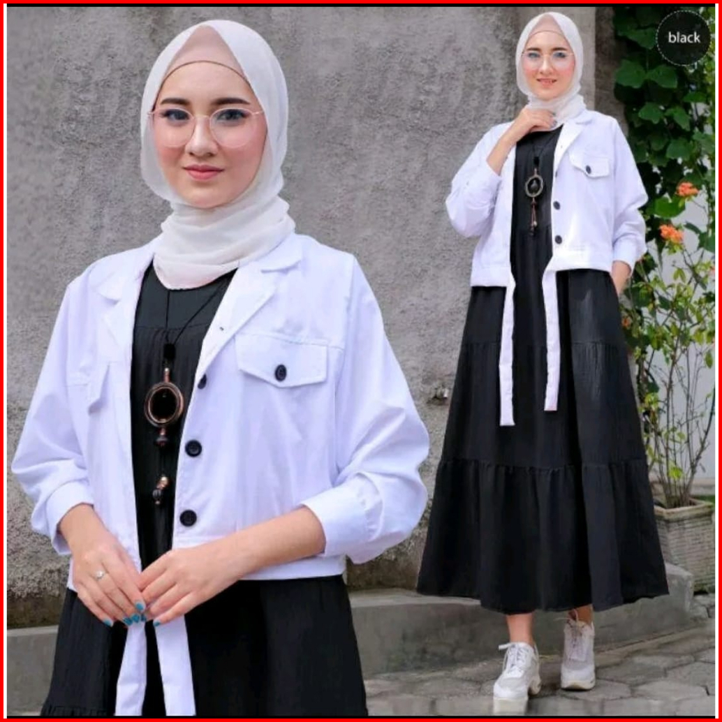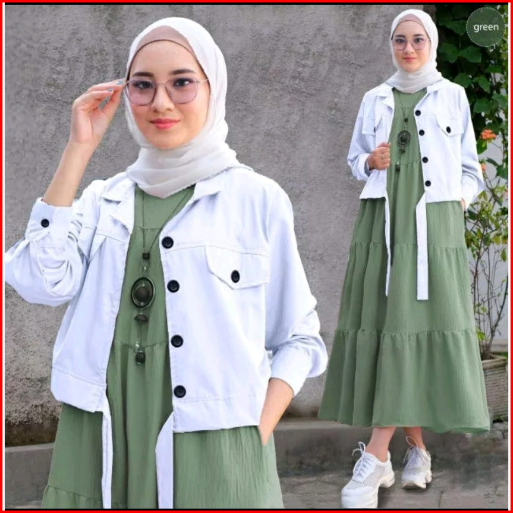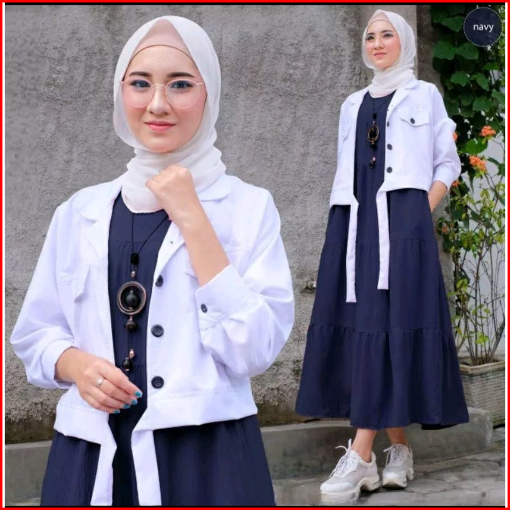 Promo..gamis Set Outer Midi Dress Rompi Terbaru Gamis Wanita Kekinian Viral