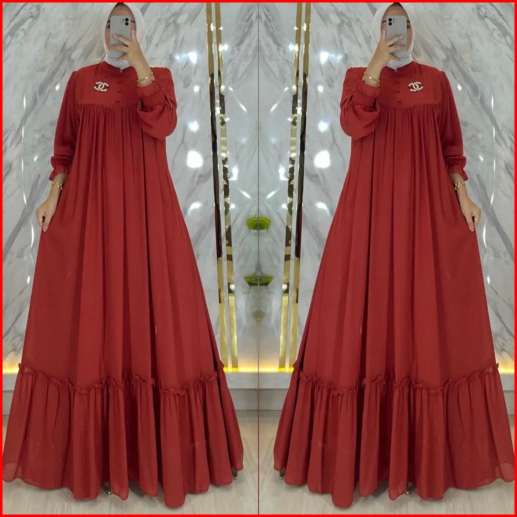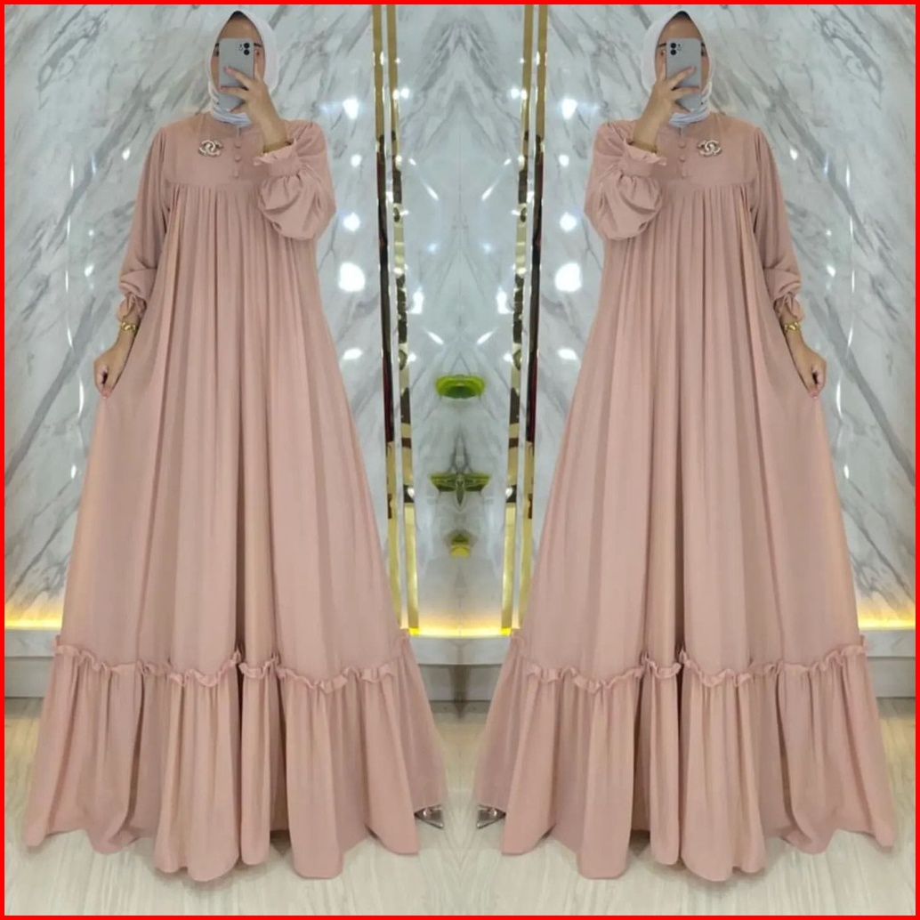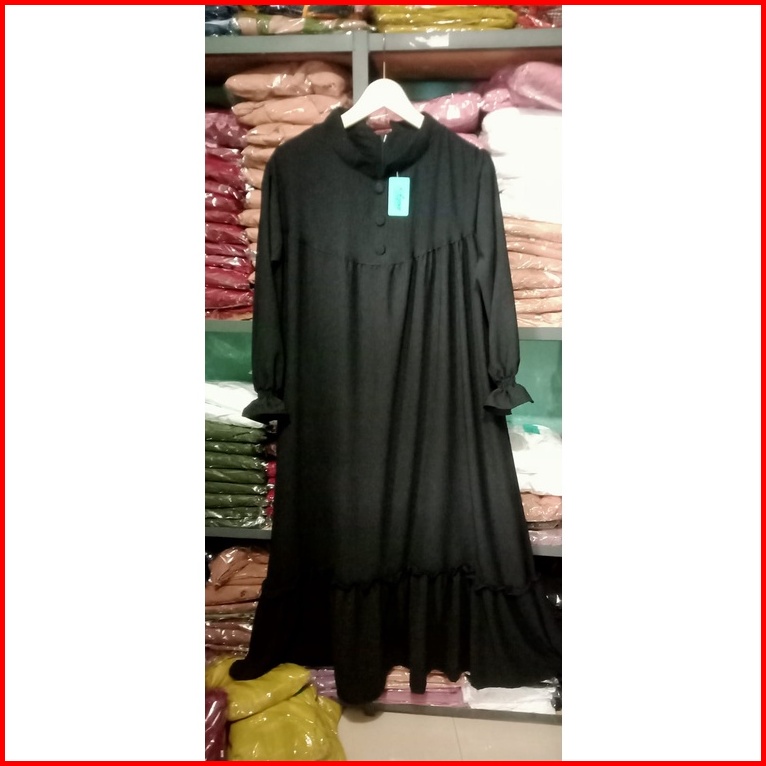 Al Fashion - Gamis Wanita Jumbo M L Xl Xxl Yoena Gamis Cringkle Air Flow Gamis Polos Hitam Coksu Matcha Milo Gamis Lebar