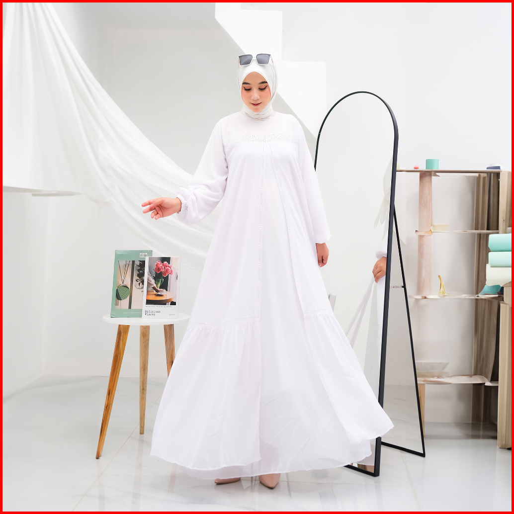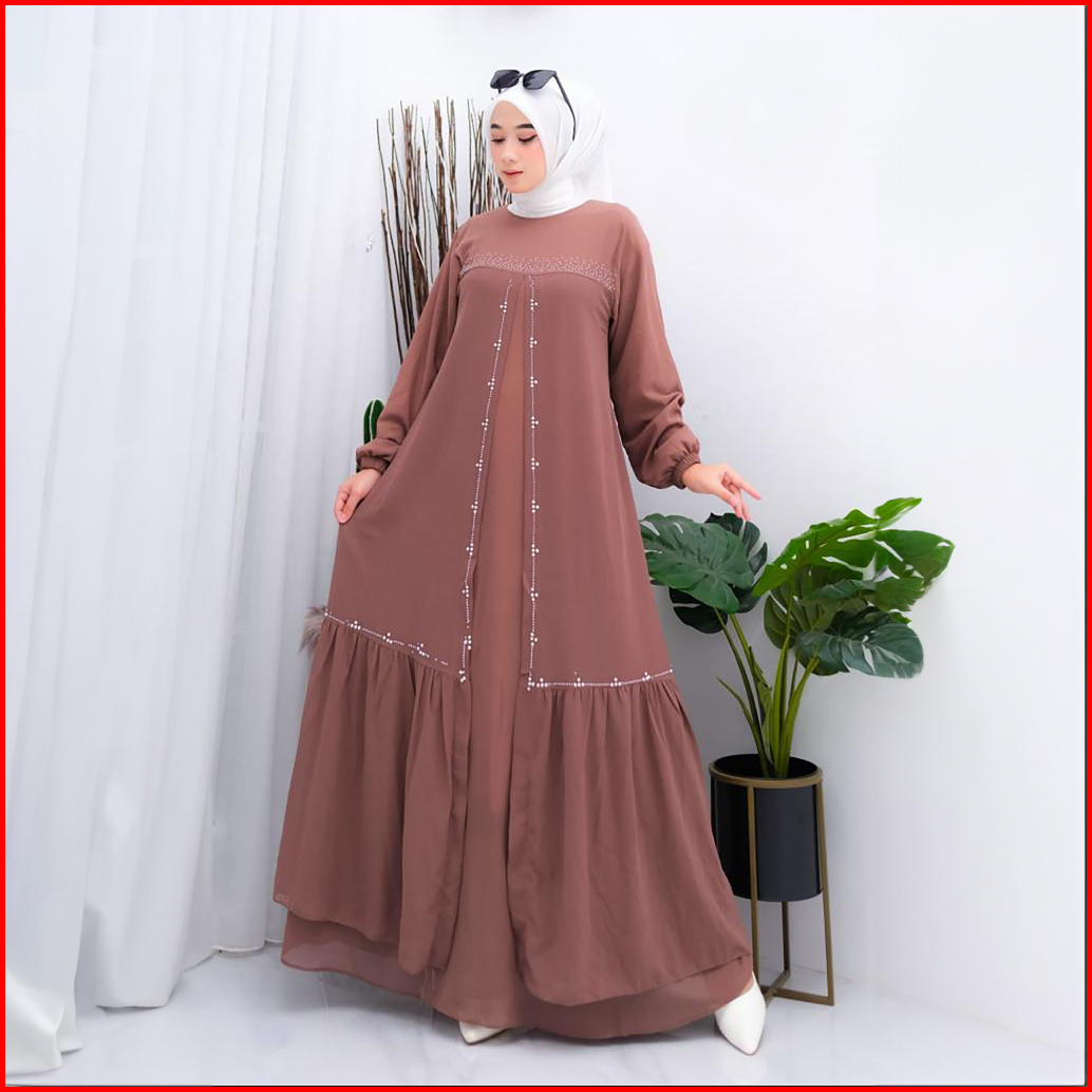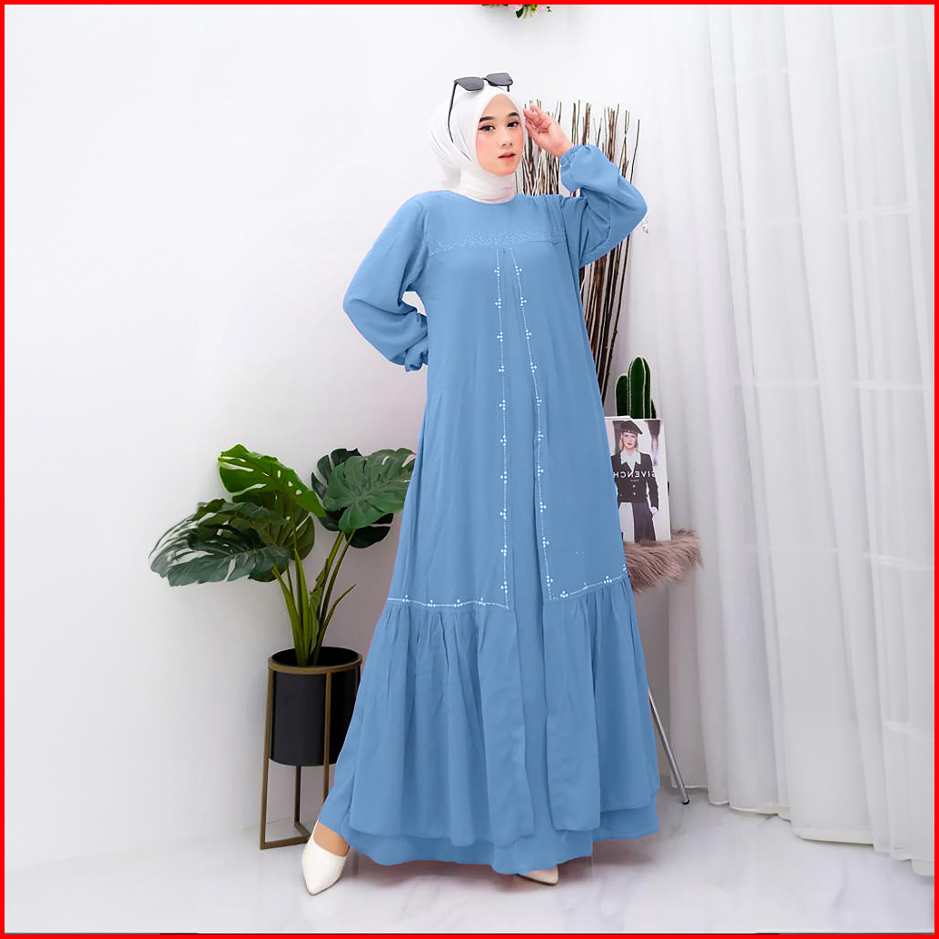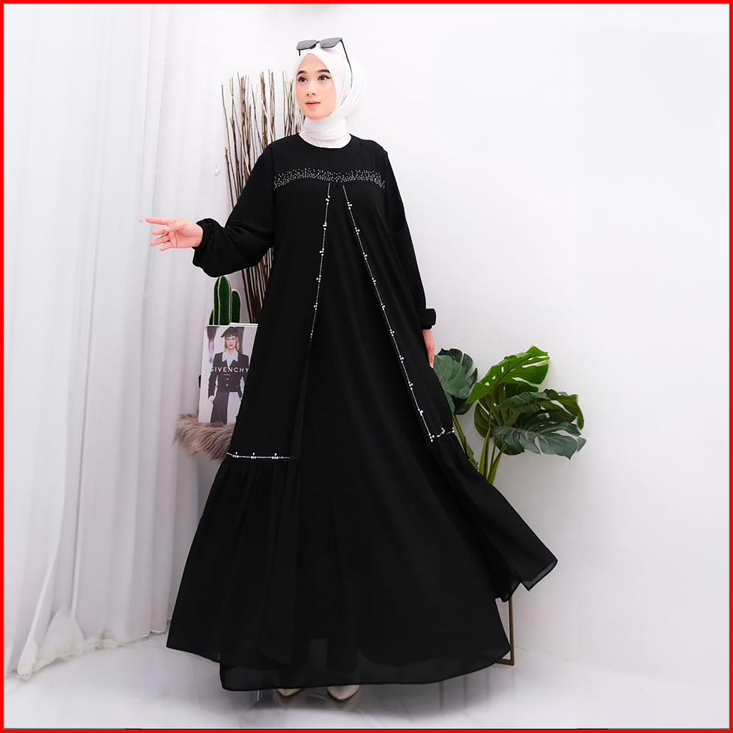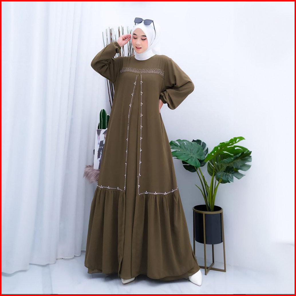 Gamis Kondangan Mewah Elegant Zaskia Dress Bahan Ceruty Babydoll Mix Swaroski Baju Lebaran 2025