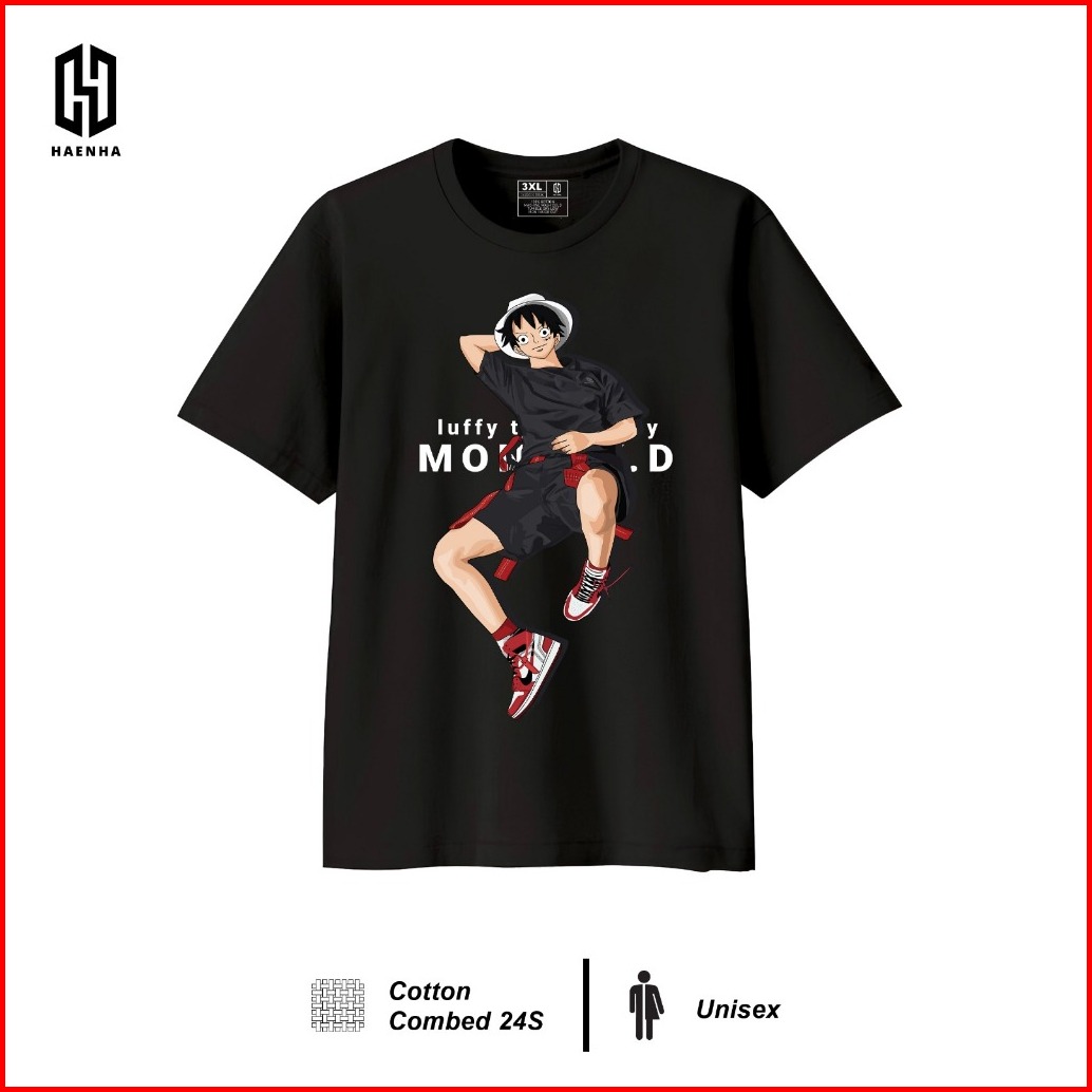 Haenha One Piece Monkey D Luffy Baju Kaos Distro - T Shirt Sablon Unisex