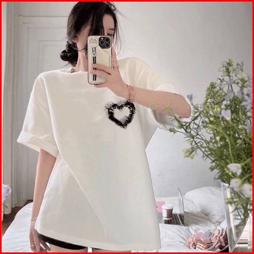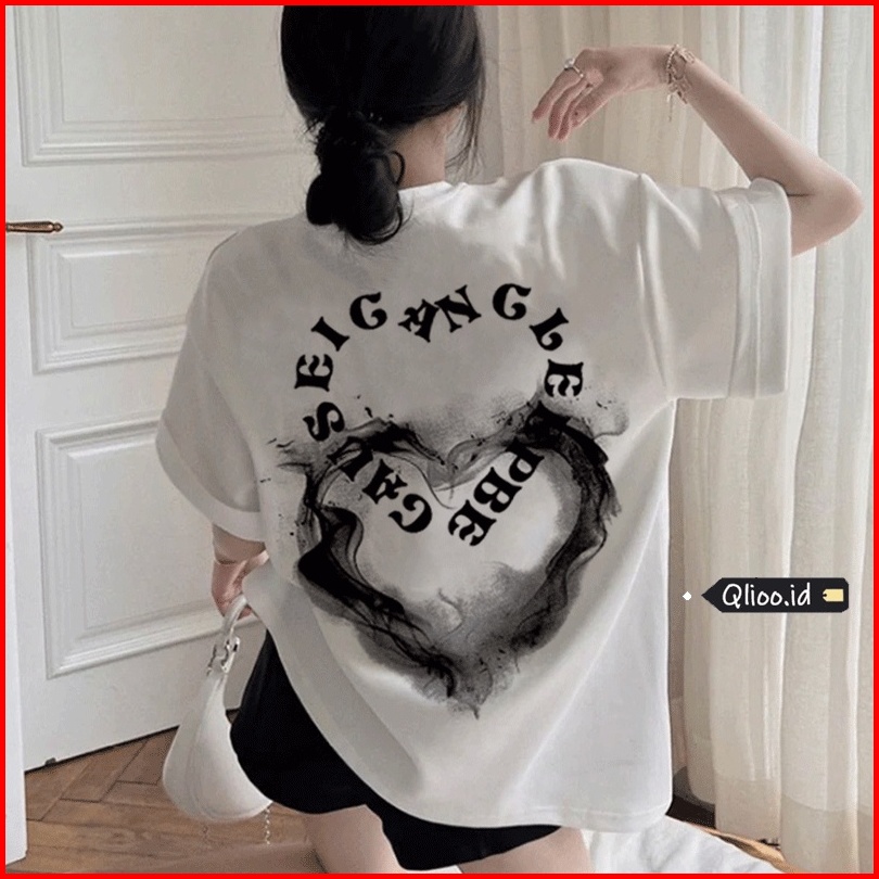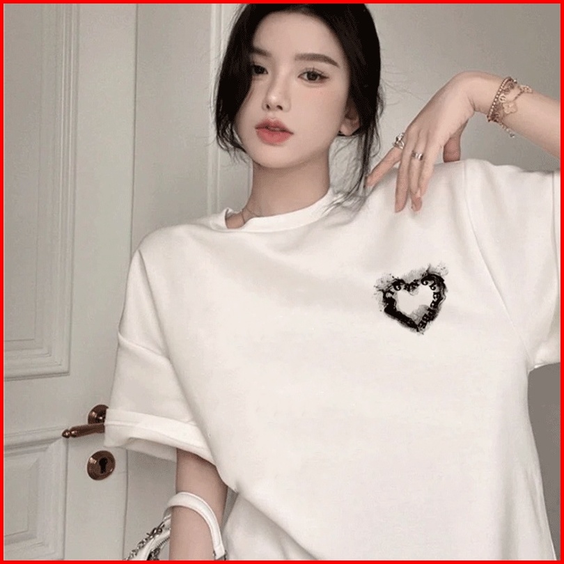 Print T-shirt Kaos Lengan Pendek Retro Love Ink Baju Wanita Oversize Korean Style Kaos Lengan Panjang Tipis