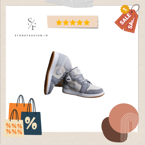SEPATU JORDAN PRIA WANITA SEPATU AIR JORDAN 1 MID COCONUT PRATICLE GREY GS WOMEN 100% ORIGINAL AUTHENTIC BEST SELLER