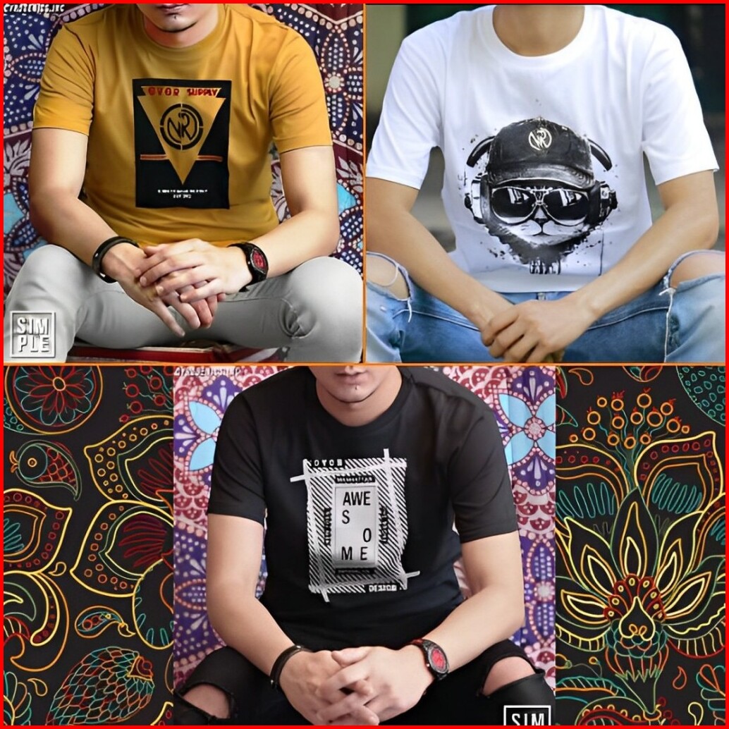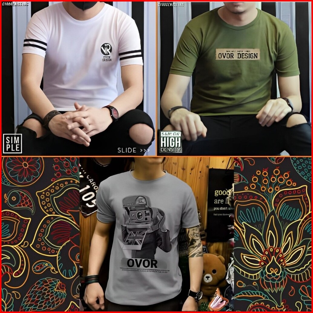 Isi 3pcs Kaos Distro Kaos Pria Lengan Pendek Kaos Pria Distro Kaos Oblong Bahan Katun