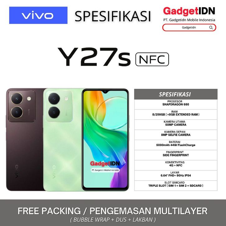 HANDPHONE VIVVOO Y27S NFC 8/256GB 8/128GB ( +8GB EXTENDED RAM ) GARANSI RESMI VIVVOO HANDPHONE TERBARU