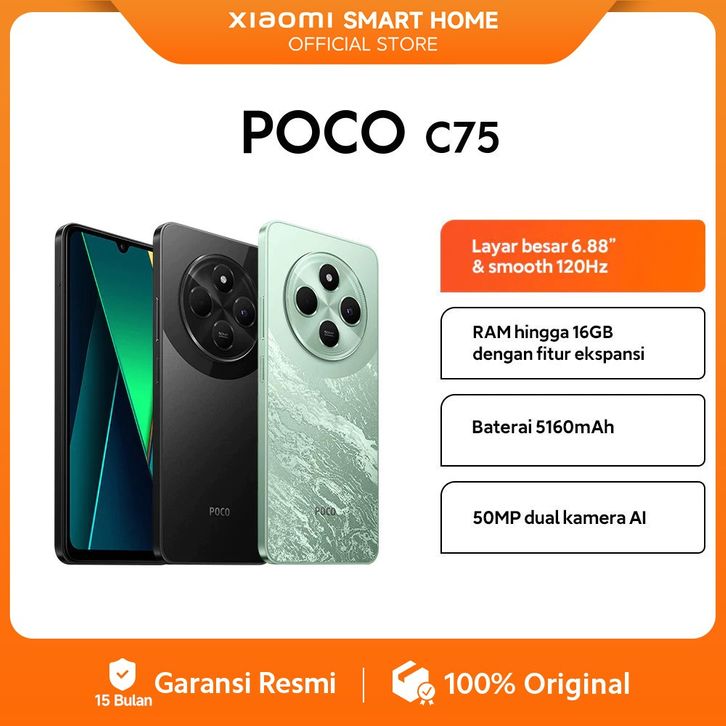 poco c75 (6/128gb) (8/256gb) | layar 6,88" | 50mp ai | refresh rate 120 hz | baterai 5.160mah | 18w pengisian cepat