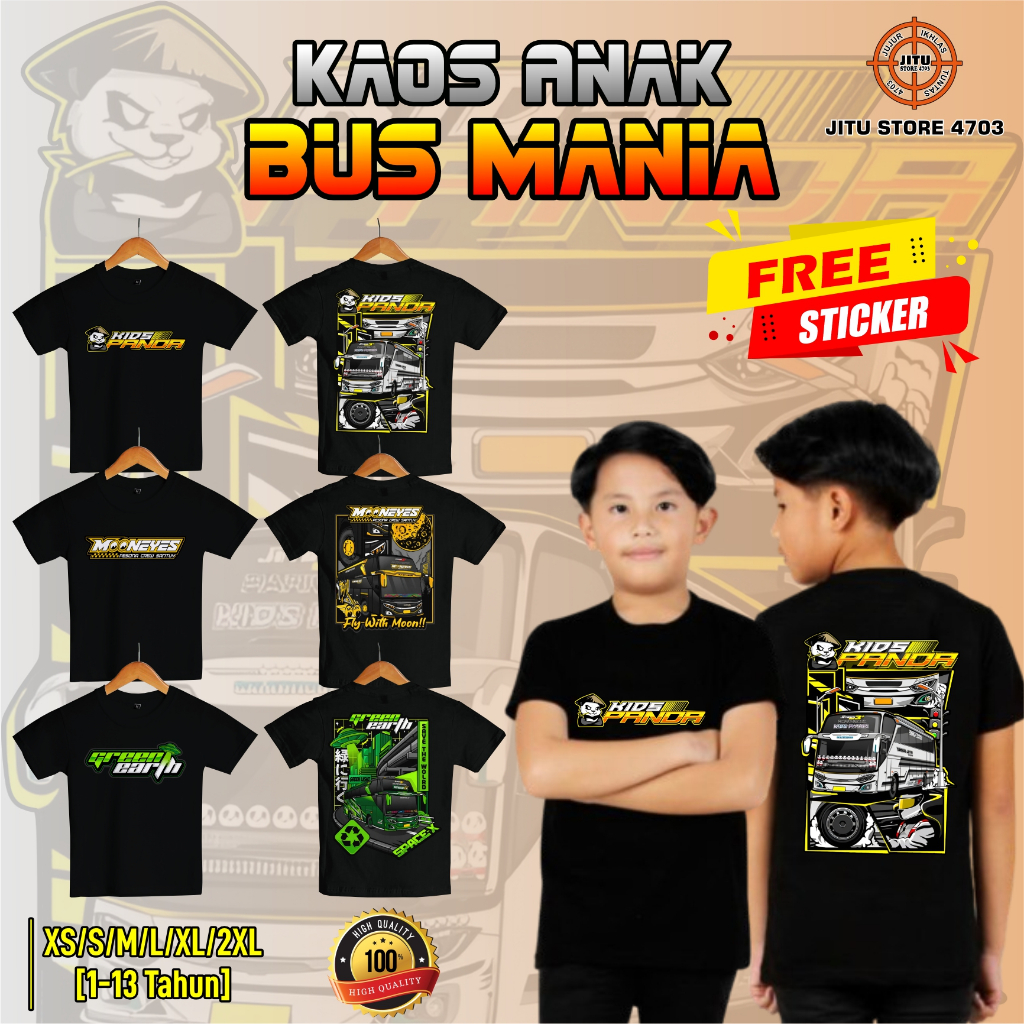 KAOS ANAK BUS MANIA KIDS PANDA JET BUS 3 BUS BASURI GRATIS STICKER