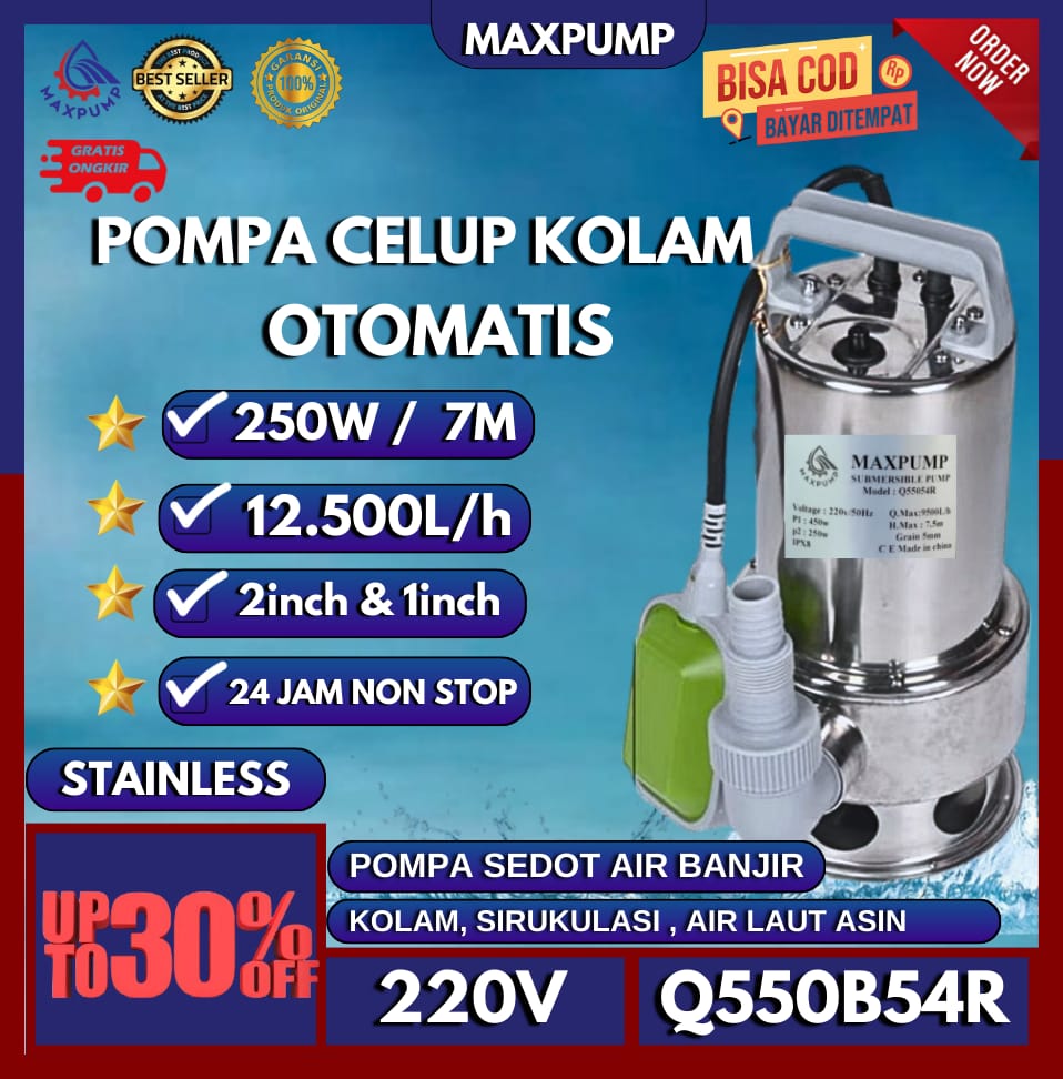 MAXPUMP Pompa Celup Sedot Air Banjir Otomatis Pompa Celup Air Bersih / Kolam Full Stainless Q550B54R