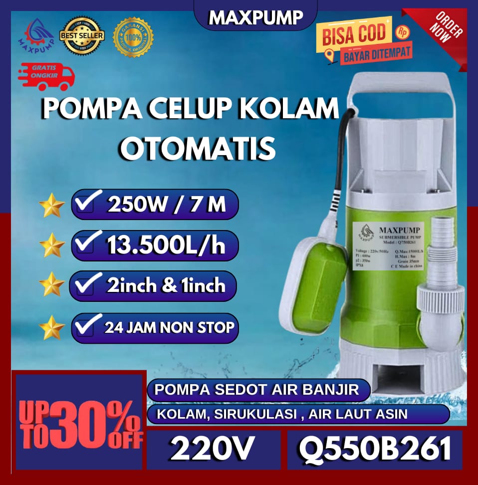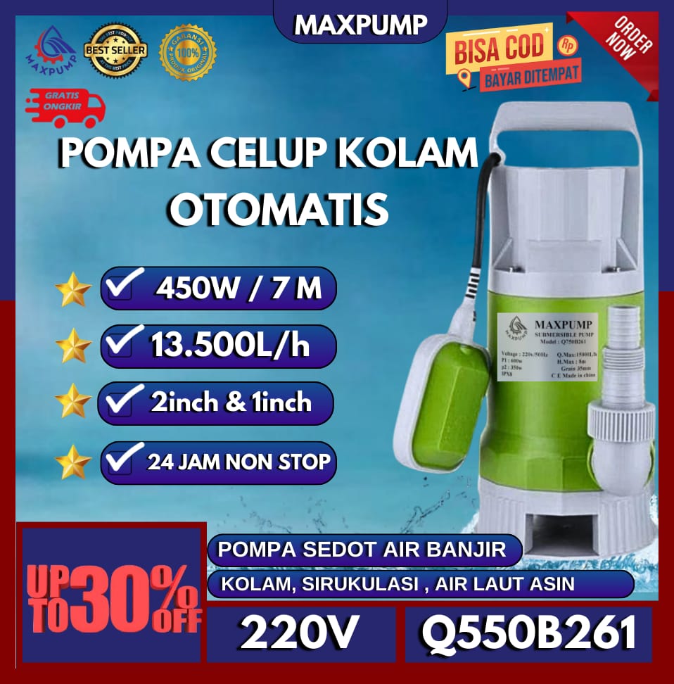 MAXPUMP Pompa Celup / Pompa Kolam Air Bersih Kotor Sedot Banjir Submersible Pump 2inch Sewage Pump OTOMATIS Q550B261
