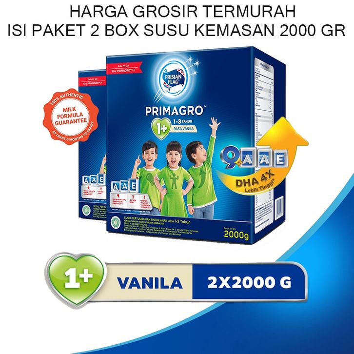 Frisian Flag Primagro 1+ Rasa Vanila 2000gr 2 Box Susu Pertbumbuhan 1-3 Tahun