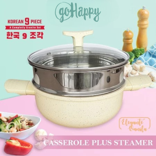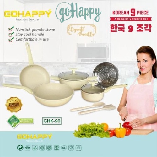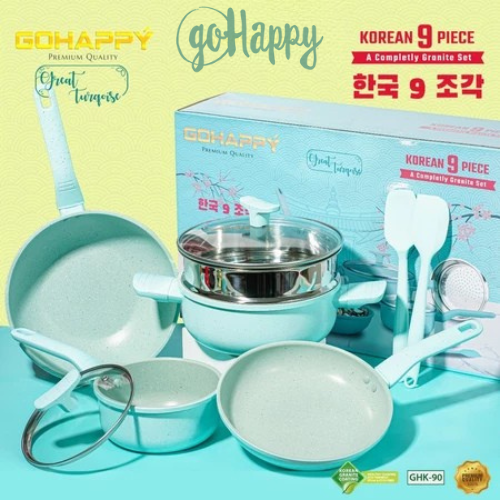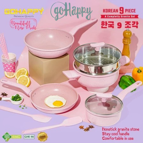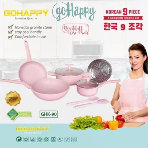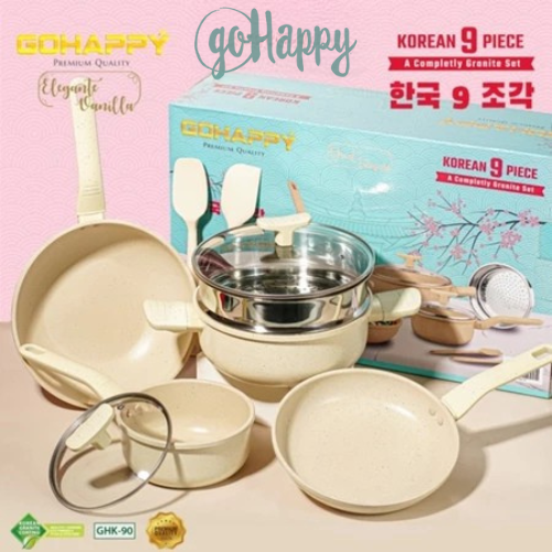 GOHAPPY COOKWARE PANCI SET ANTI LENGKET KOREA POT GRANITE 9 5 PCS PANCI 1 SET LENGKAP TUTUP KACA KUALITAS TERBAIK