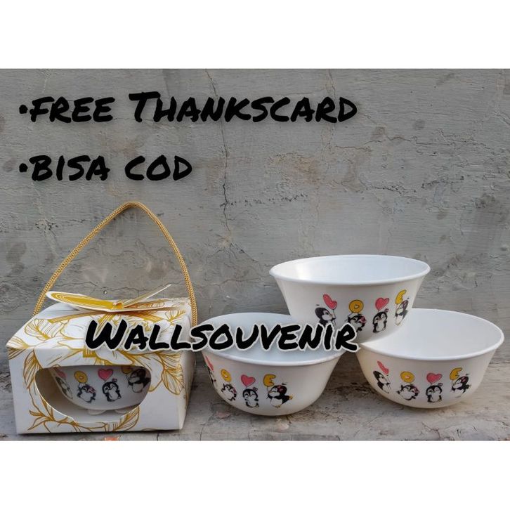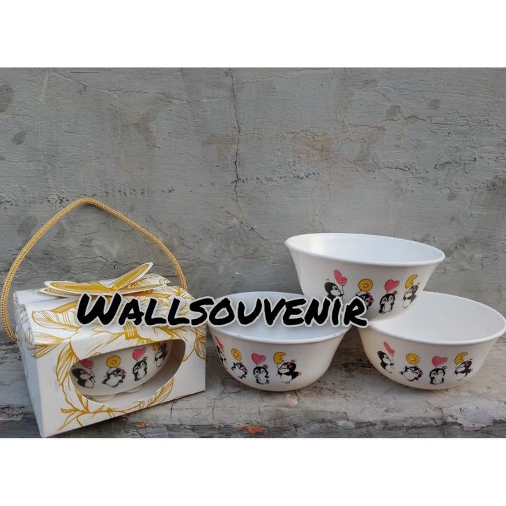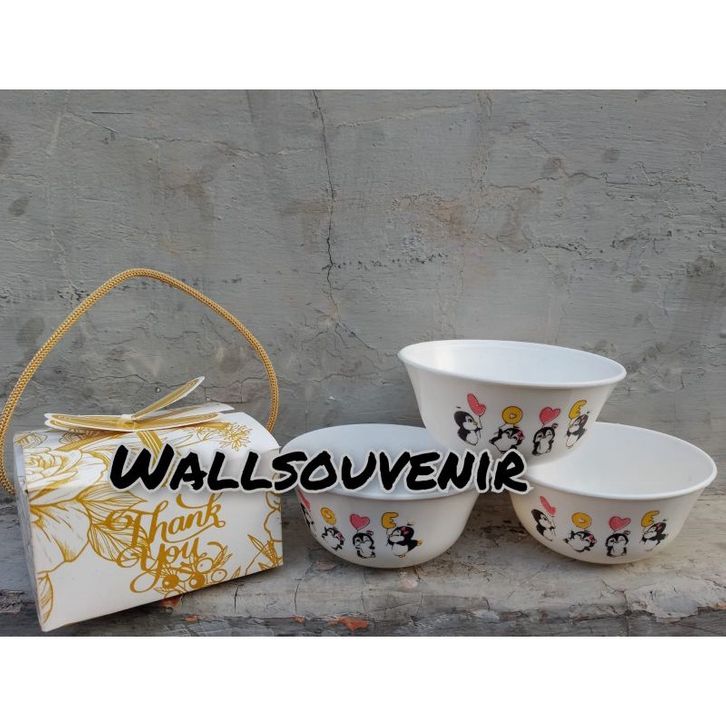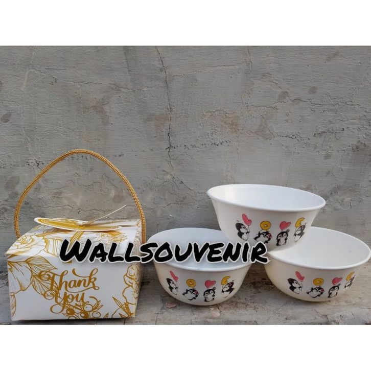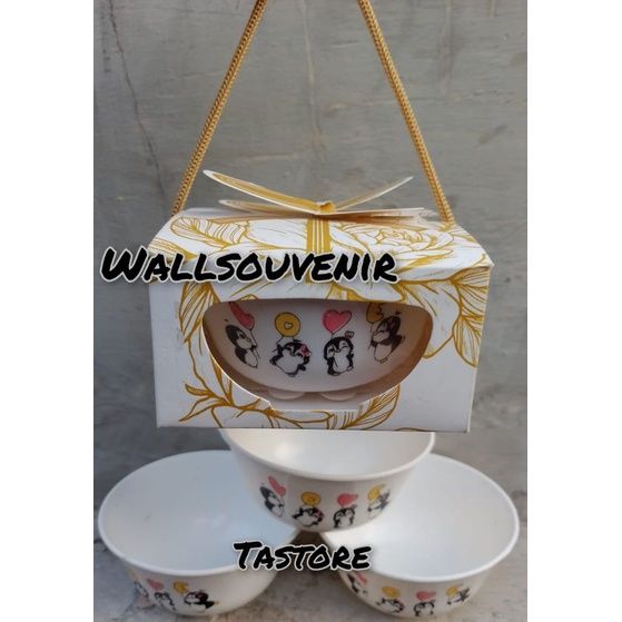 ( Isi 50pcs ) Souvenir Pernikahan Mangkok Bulat Penguin Kemasan Box Cantik