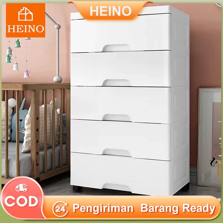 HEINO Laci Lemari Plastik Lemari Baju Organizer penyimpanan pakaian laci samping tempat tidur Kabinet Drawer Storage