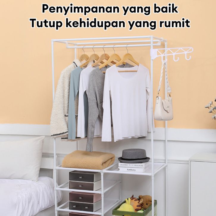 Standing Hanger Portable Gantung Baju Penyimpanan Serbaguna Lemari Pakaian Tanpa Kain