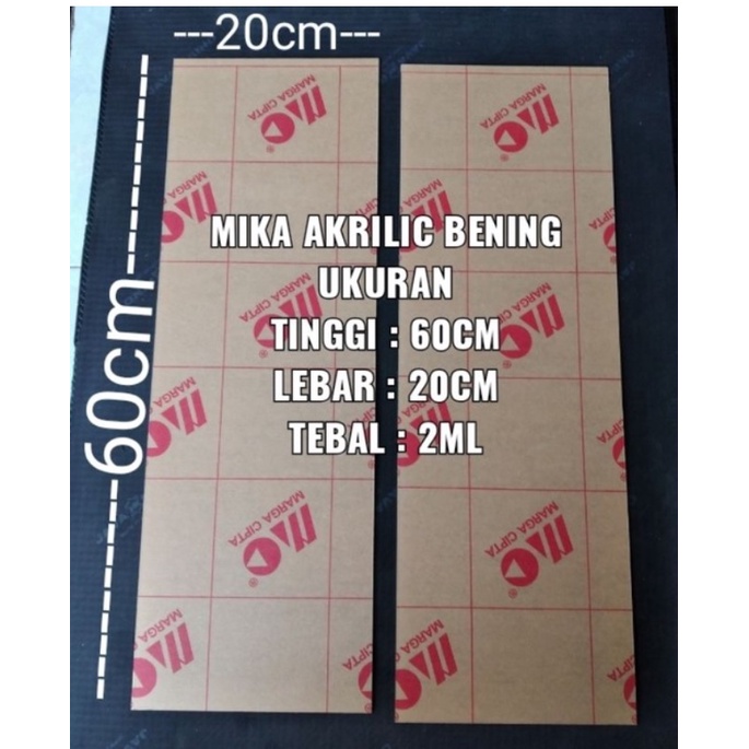 MIKA AKRILIK BENING LEMBARAN UKURAN PANJANG 60CM LEBAR 20CM TEBAL 2ML DAN PANJANG 30CM LEB