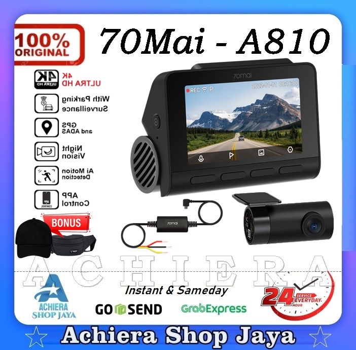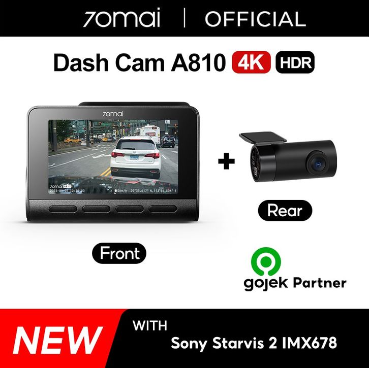70Mai A810 Dash Cam Set Front 4K 2160P Rear HDR 1080P GPS Night Vision Garansi Resmi