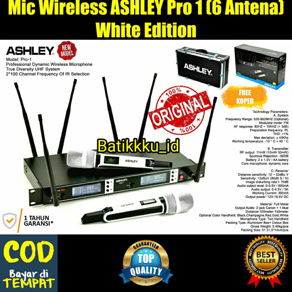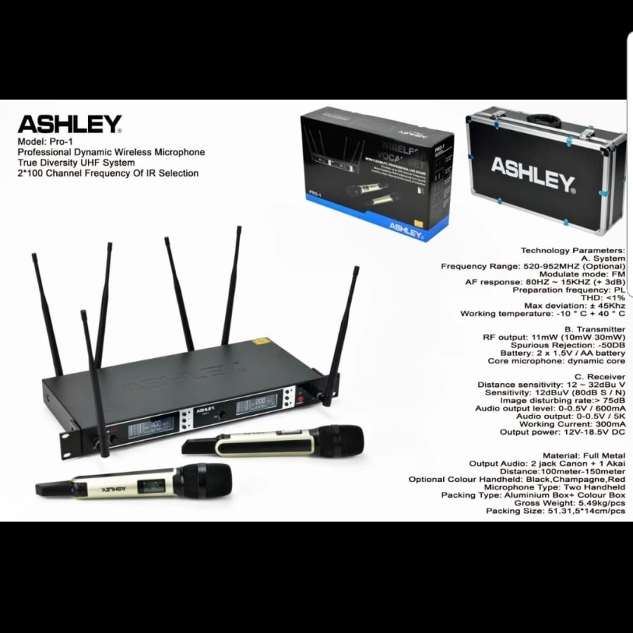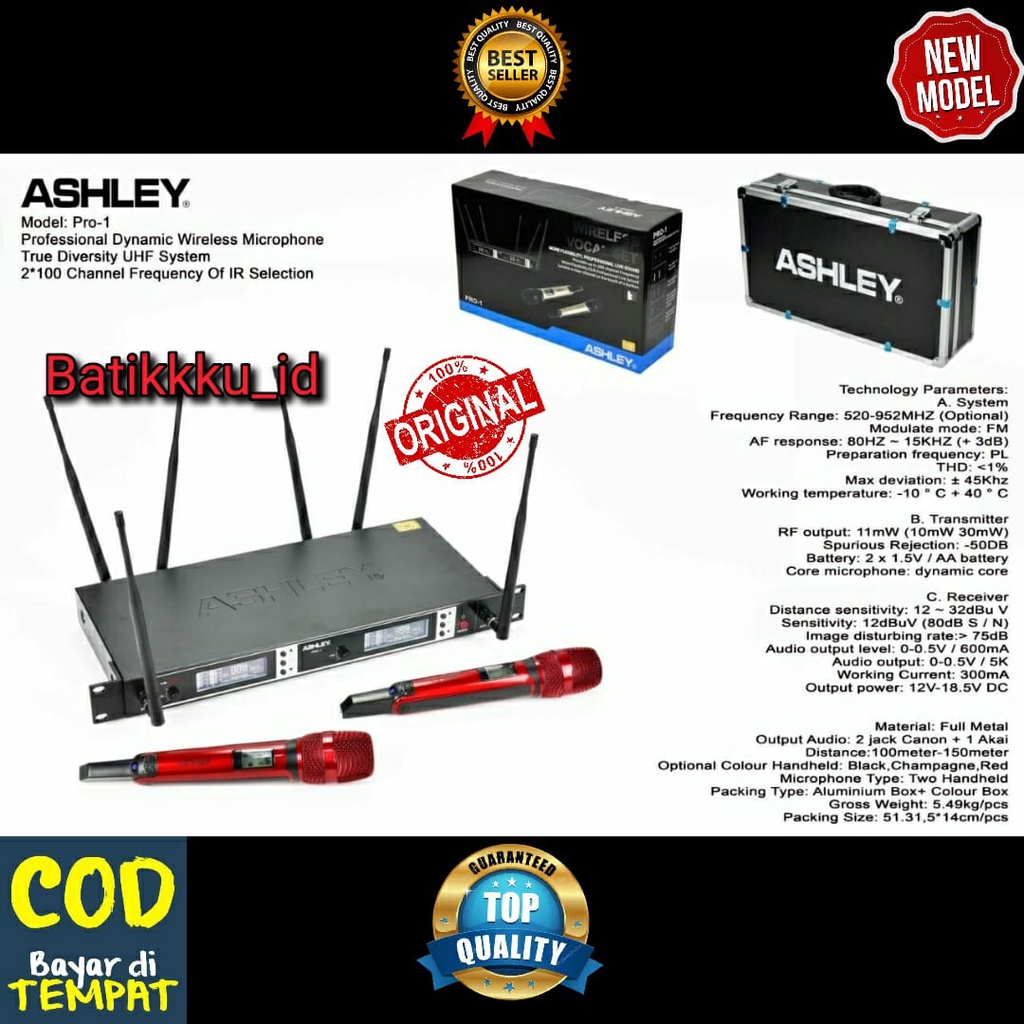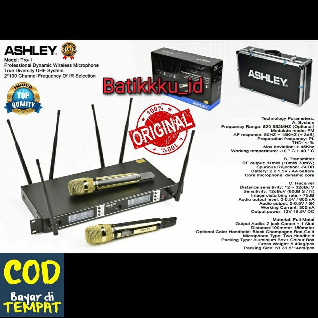 MIC WIRELESS ASHLEY PRO 1 PRO1 ORIGINAL FREE KOPER MIC HANDHELD