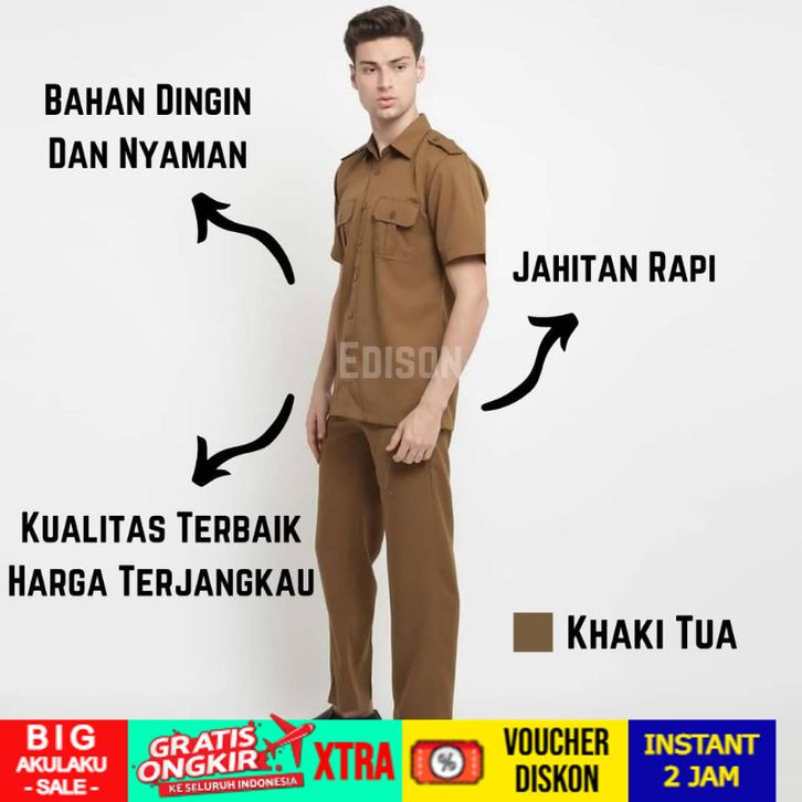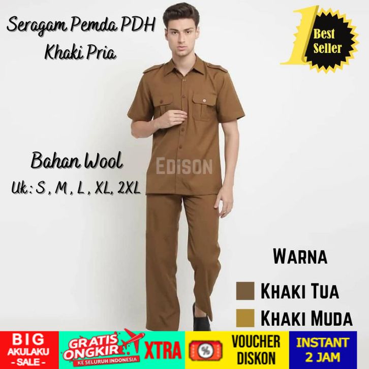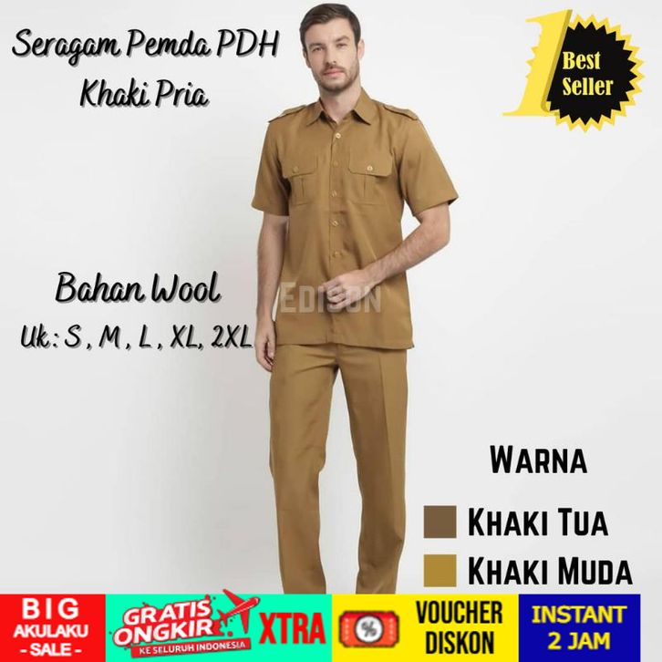 Seragam Pemda PNS ASN PDH Pria/Wanita Cokelat Khaki Keky Muda Tua / Seragam Kejaksaan Pendek Panjang BAHAN PREMIUM