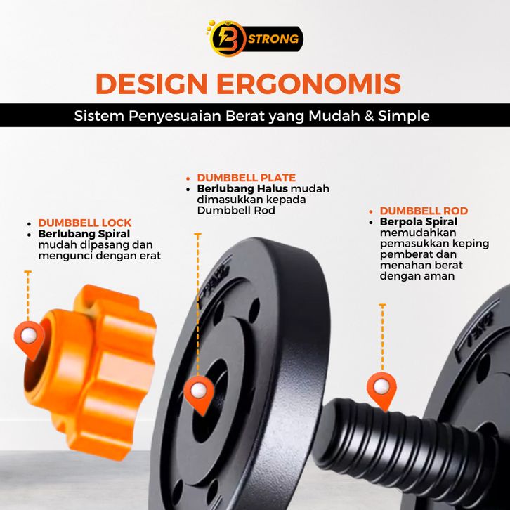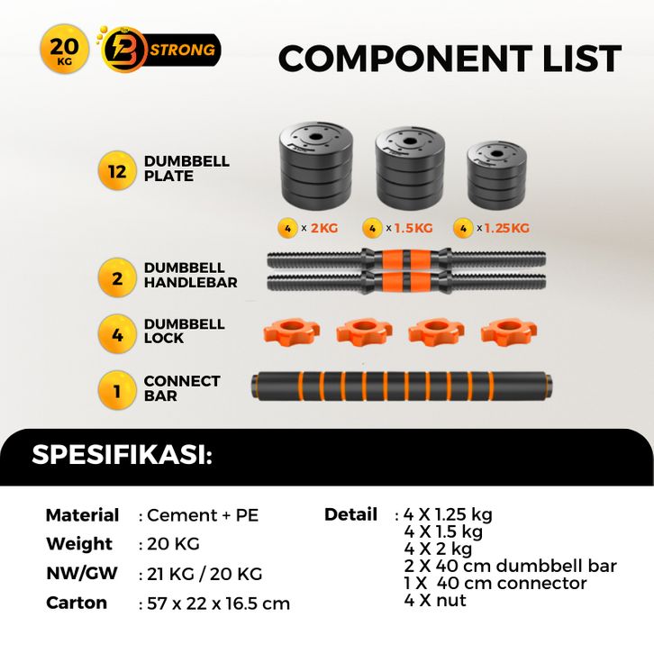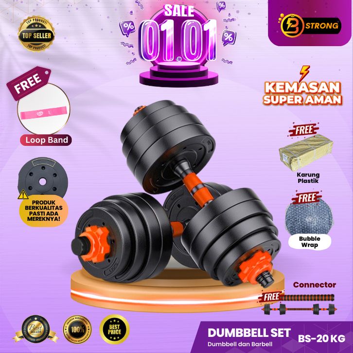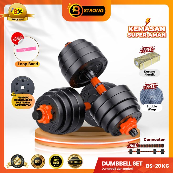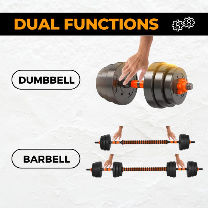 B-STRONG BS-20 Fitness Dumbbell Barbel Set - 20KG Multifunctional 3IN1