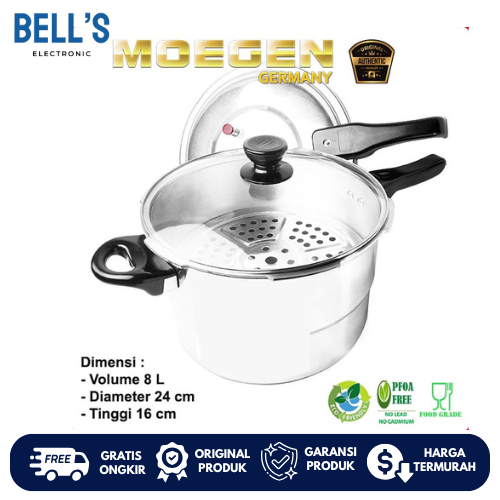 MOEGEN Panci Presto 8 Liter Pressure Cooker Pelunak Daging Serbaguna Original