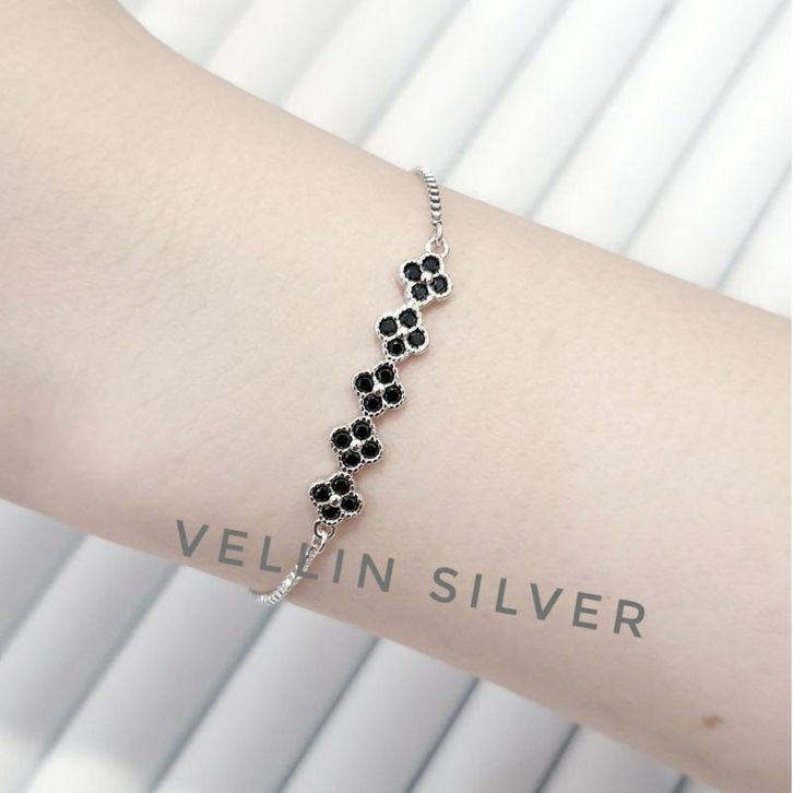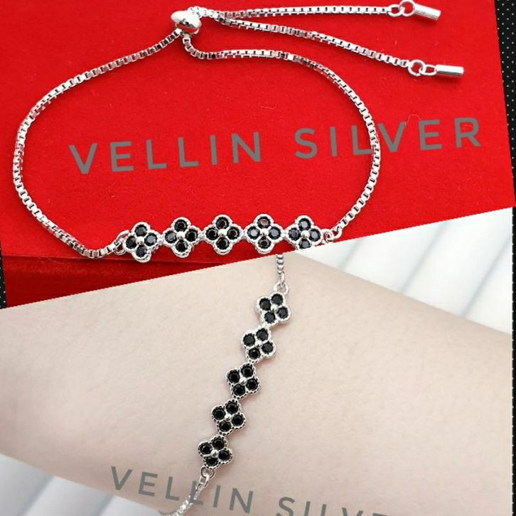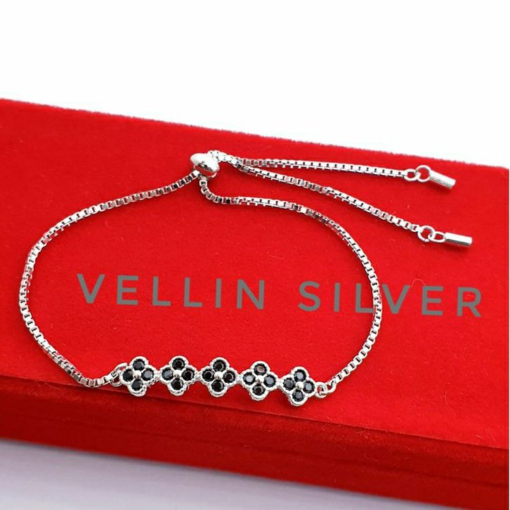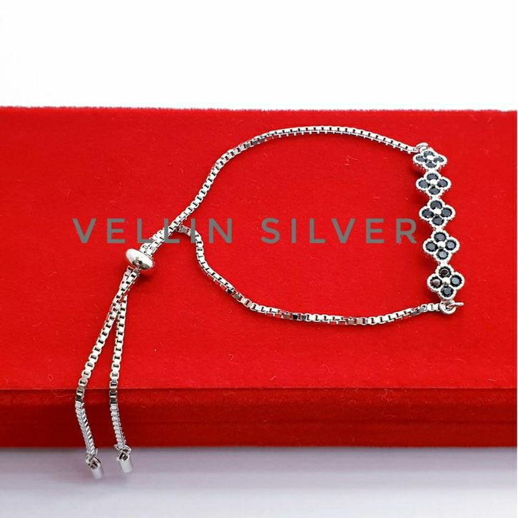 Gelangg Perak italy Serut Model Vancleef 925 - Gelangg Tangan Clover Hitam Silver 925 Lapis Ems Putih