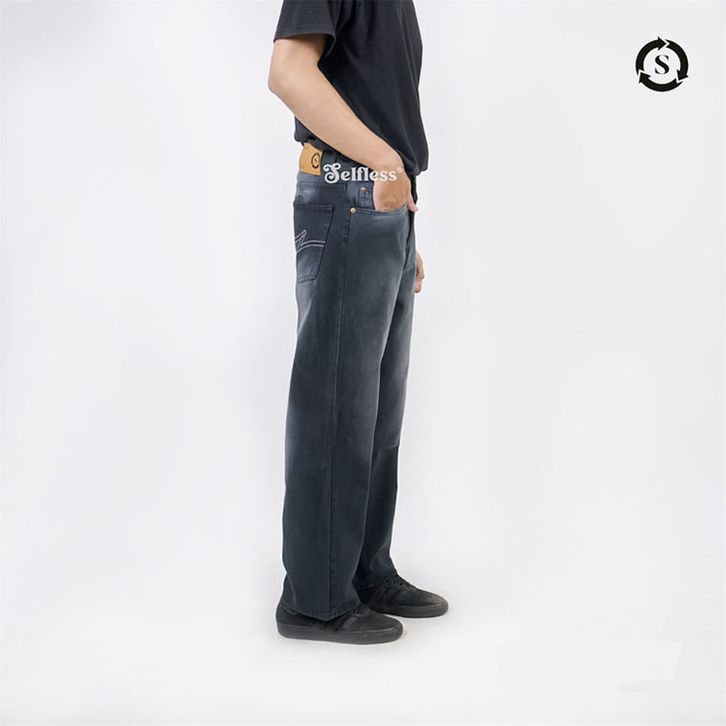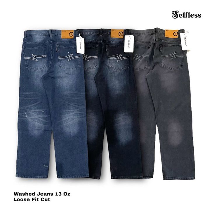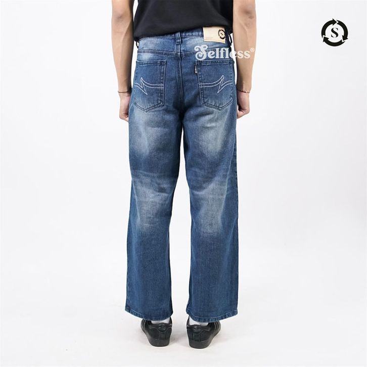 Celana Panjang Jeans Washed Loose Fit Pria Celana Jins Jeans Panjang Standar Reguler Pria Gombrong Kombor - Selfless