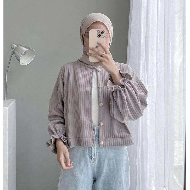 CARDIGAN WANITA BAJU ATASAN CEWE KARDIGAN KEKINIAN TERBARU OUTER PUFFY KNIT KOREAN STYLE CARDI BUTTON KANCING VINT