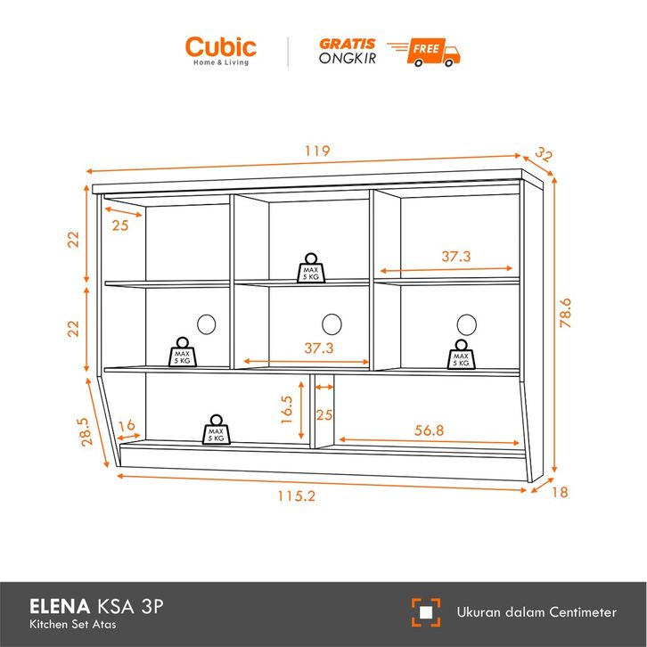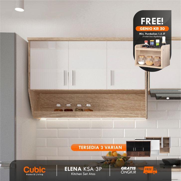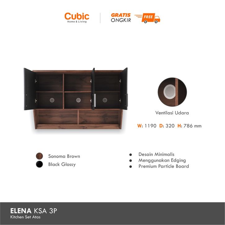 RAK DAPUR MINIMALIS ATAS RAK KITCHEN SET 3 PINTU RAK PENYIMPANAN ATAS DAPUR HIGH QUALITY ELENA KSA 3P WARNA HITAM PUTIH