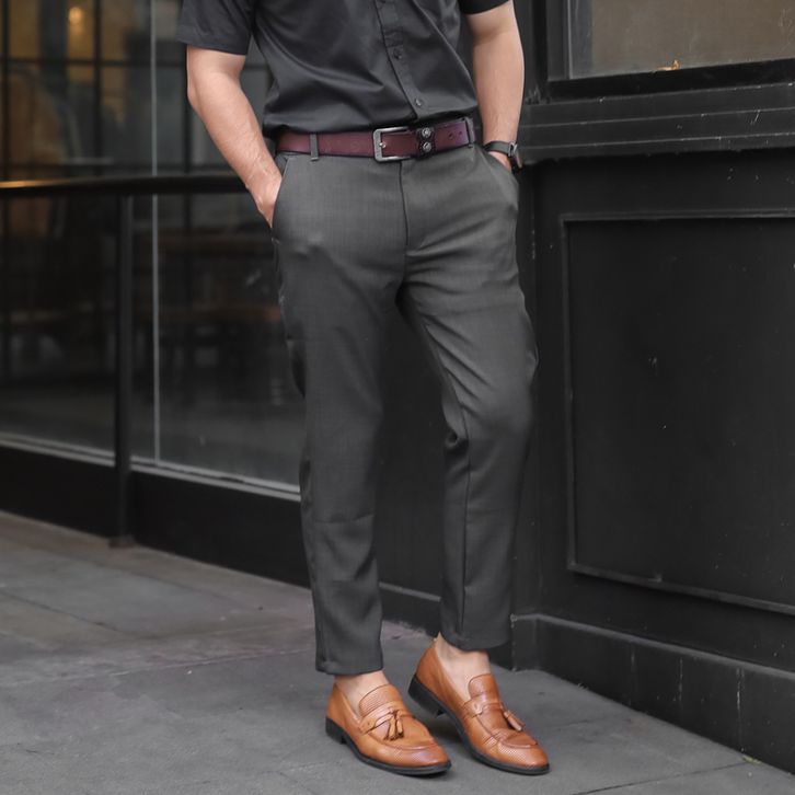 Celana Formal Pria Kasual Dapper Formal Ankle Pants Dark Grey Misty