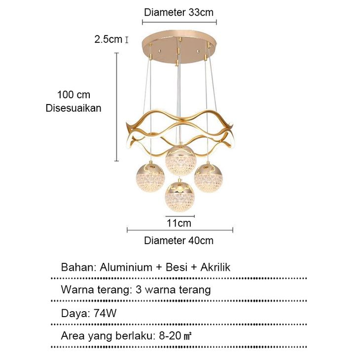 LAMPU GANTUNG KRISTAL MEWAH MINIMALIS 3 WARNA LED REMOTE CONTROL MEJA MAKAN RUANG TAMU DEKORASI TERLARIS