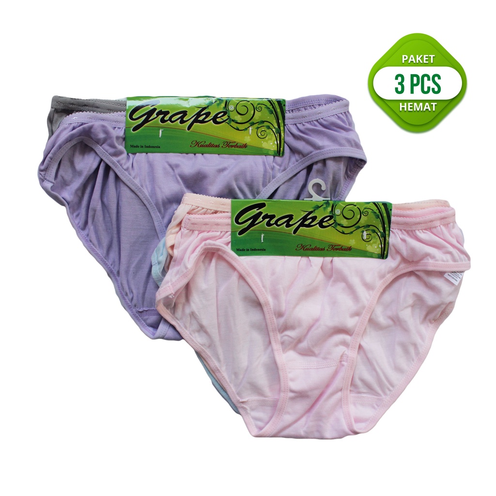 CELANA DALAM WANITA 3 PCS BASIC CD PANTY POLOS GR 1025 GRAPE