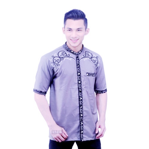 ALKHALIS BAJU KOKO LENGAN PENDEK BORDIR BATIK MOOT SIZE M L XL XXL XXL