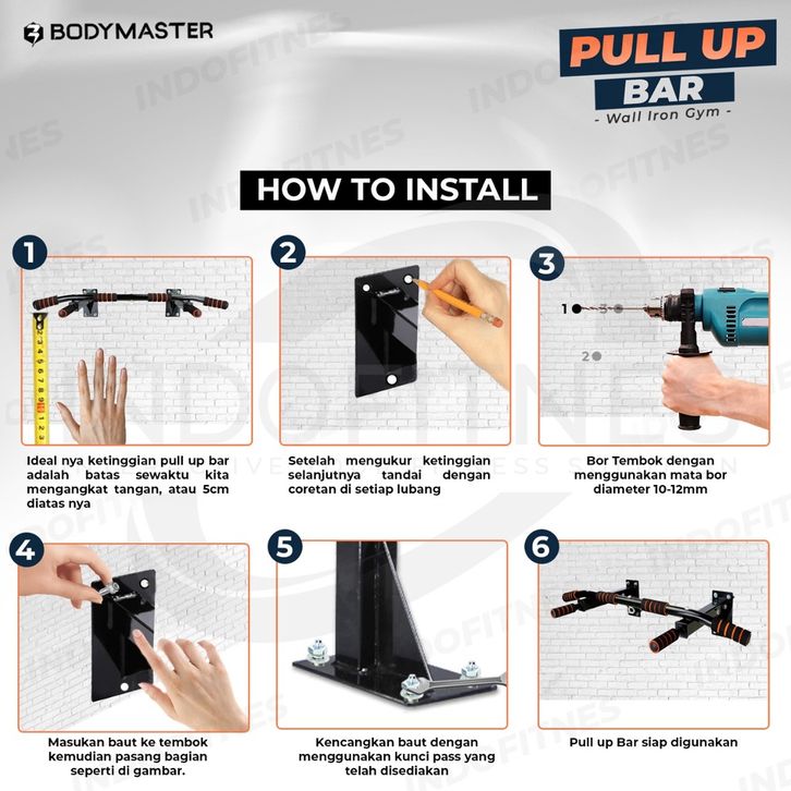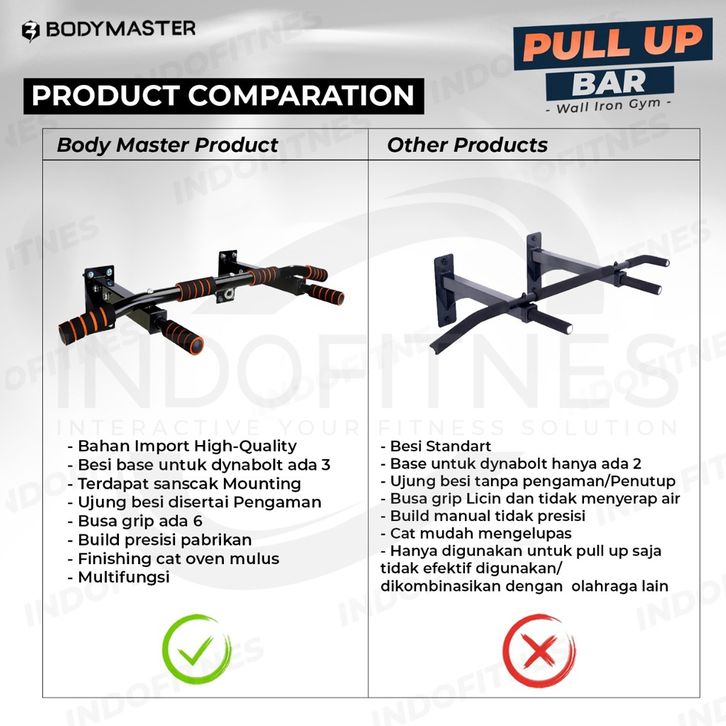 BODYMASTER Pull Up Bar BM-50 Wall Chin Up Pullup Samsak Bracket