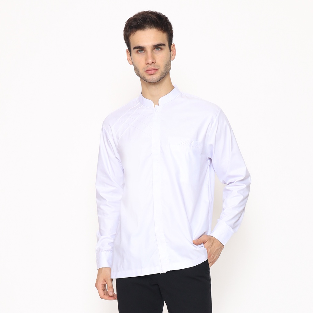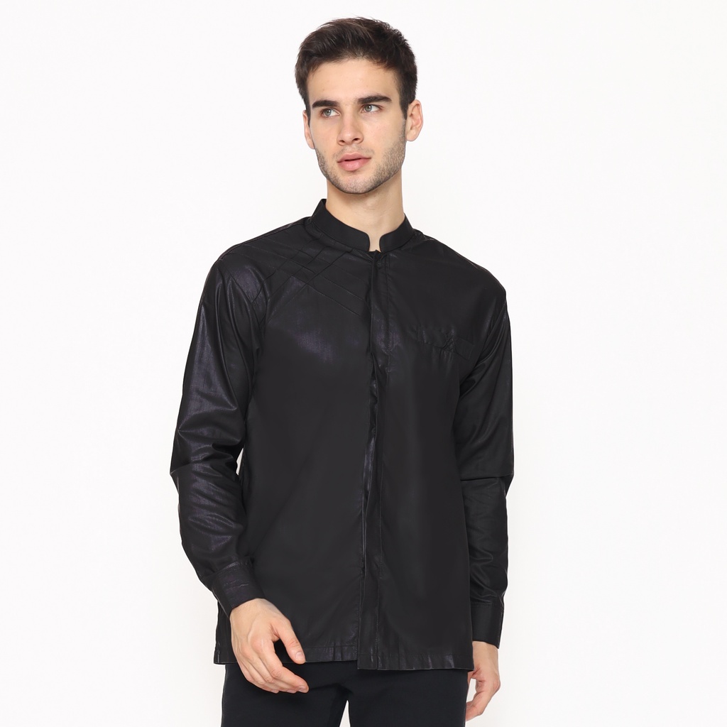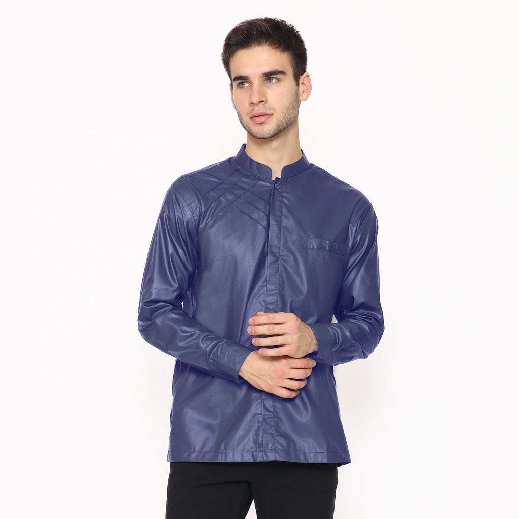 BAJU KOKO PRIA HADROH KOMBINASI MOTIF MARVEL LENGAN PANJANG WARNA NAVY M L XL