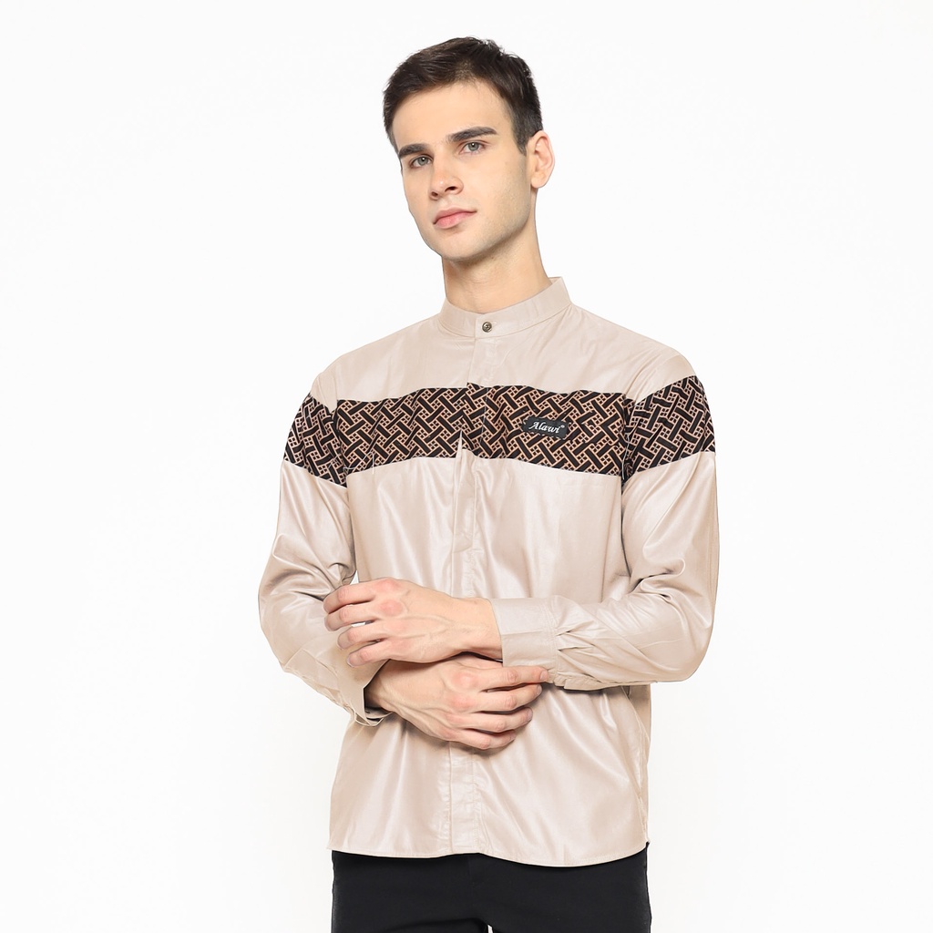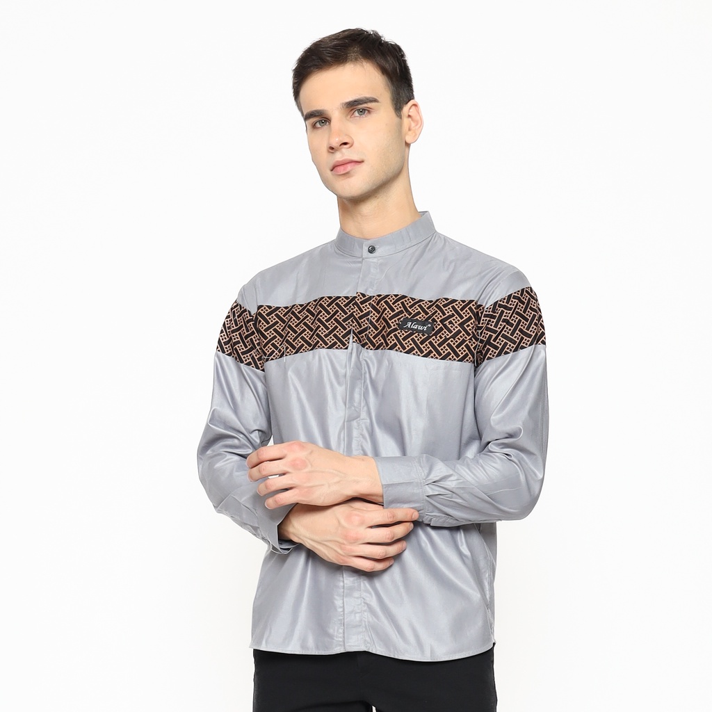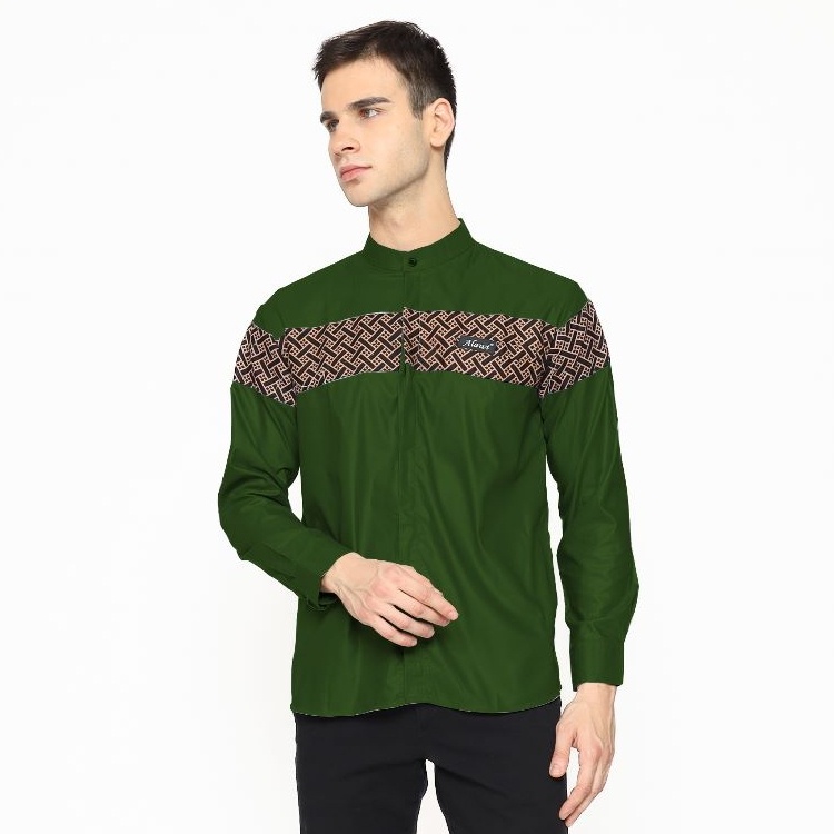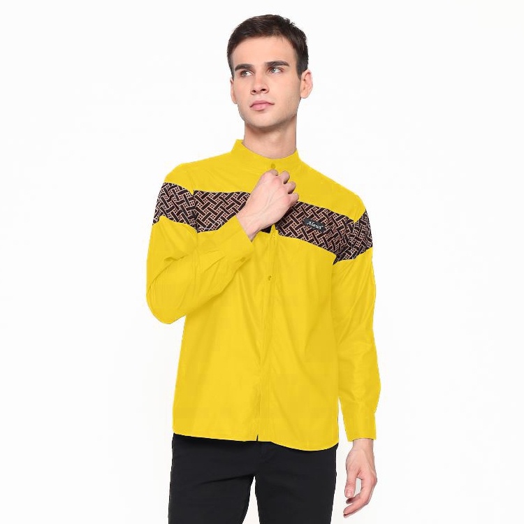 BAJU KOKO PRIA LENGAN PANJANG MOTIF QINANG BATIK WARNA HITAM - M L XL