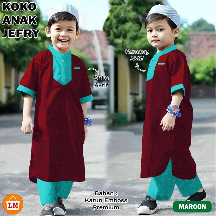 Setelan Koko Anak JEFRI , Stelan Jubah anak, Baju Koko Trendy, Baju Lebaran BAJU KOKO ANAK LPM 21143
