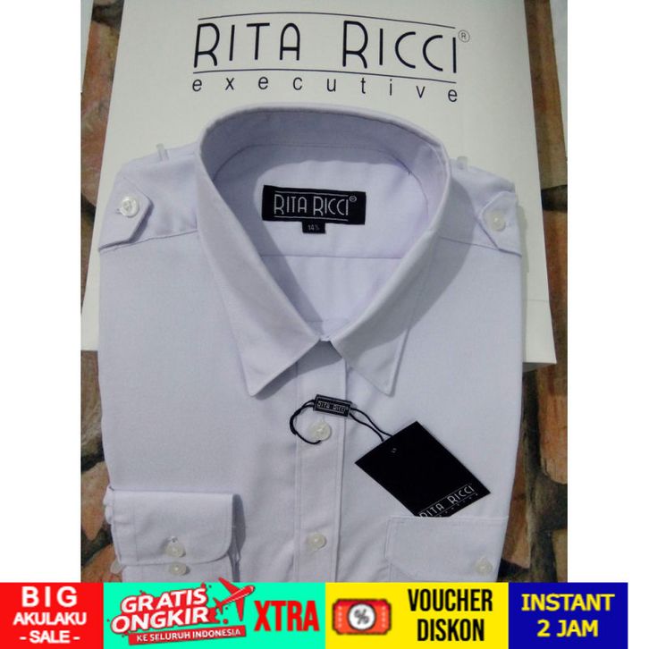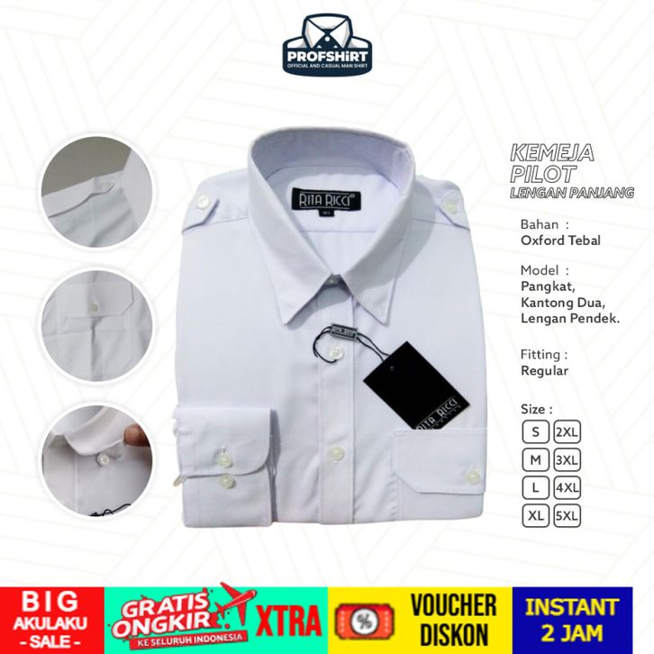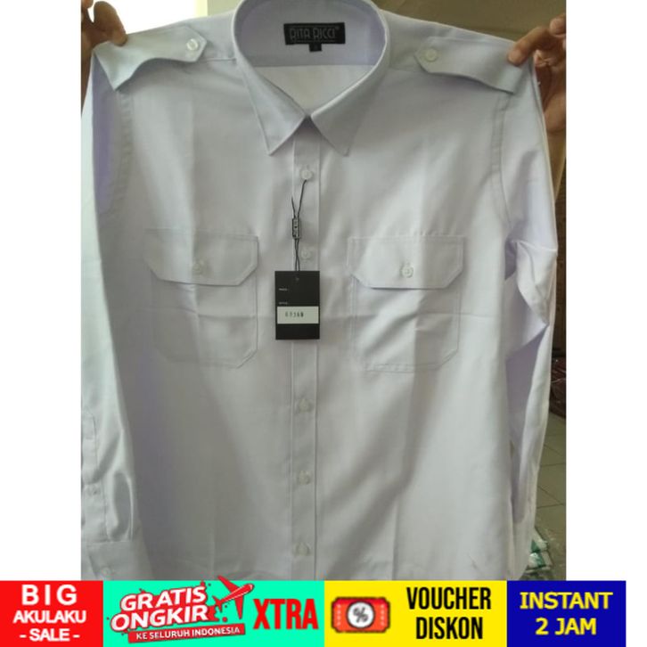 Rita Ricci Kemeja Pria Pilot Lengan Panjang Pangkat Oxford Kantong Dua Regular Putih Seragam Dinas BAHAN PREMIUM