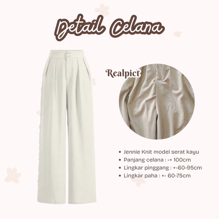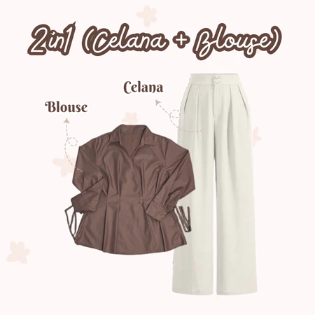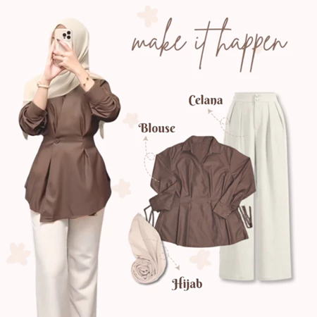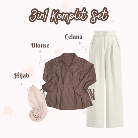 One Set Wanita Kekinian 3in1 Setelan Baju Wanita Dewasa Stylish Remaja Blouse Celana Knit Hijab Outfit Daily Look L77N