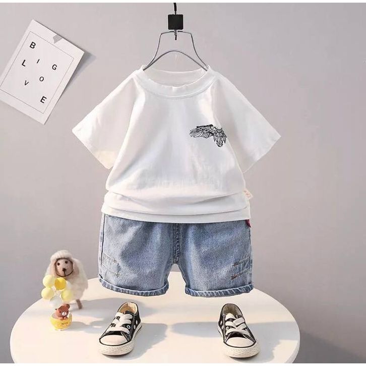 SETELAN BAJU ANAK LAKI LAKI 1-5 TAHUN DENIM SAYAP PAKAIAN ANAK TERARU SETELAN ANAK BAJU DAN CELANA JEANS ANAK